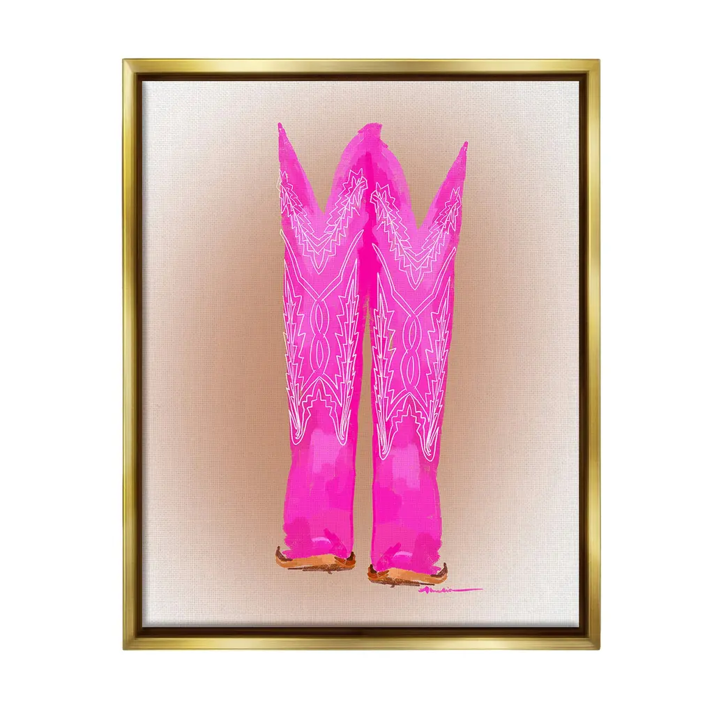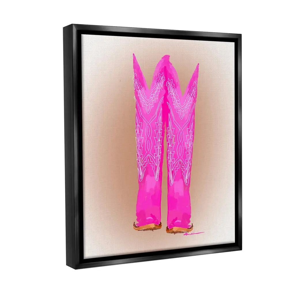 Stupell Vivid Pink Cowgirl Boots Framed Floater Canvas Wall Art Design By Amelia Noyes - 17 X 21 - Black