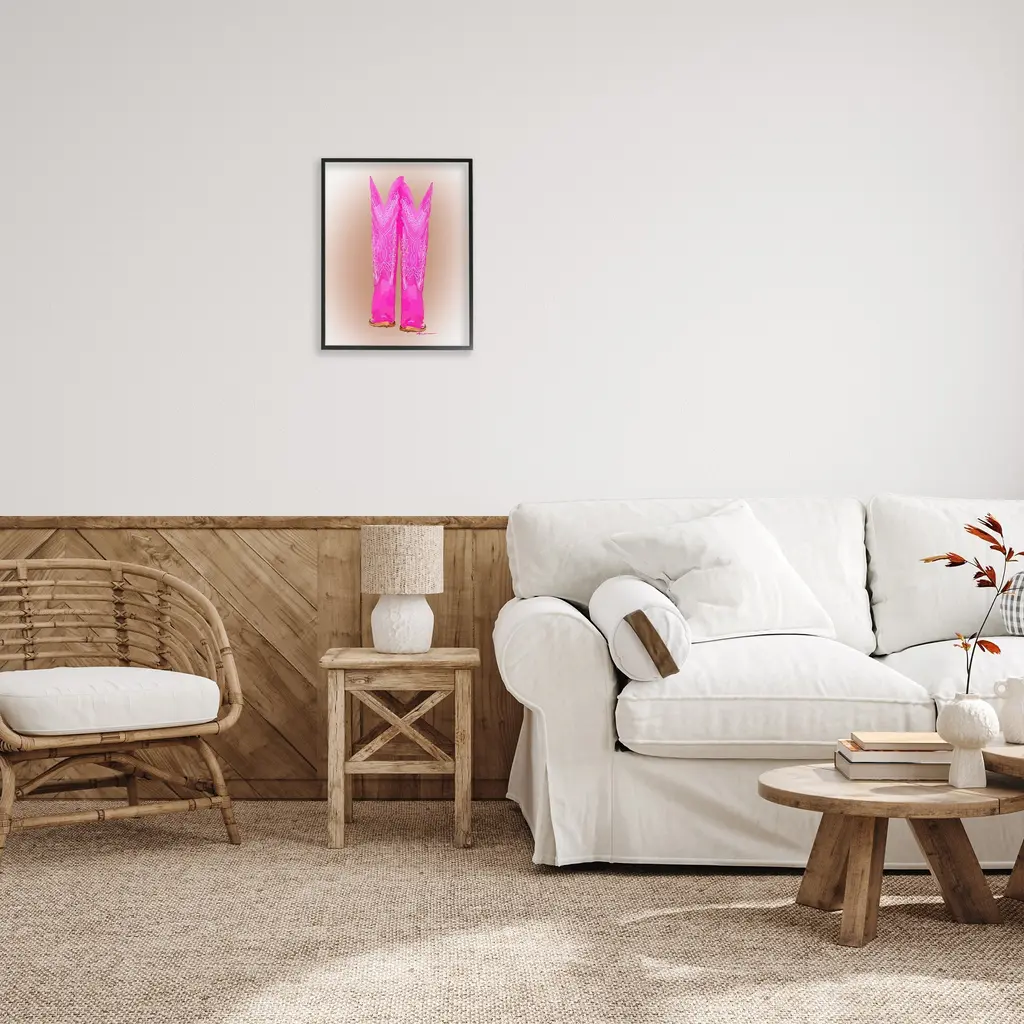 Add dimension to any room with our textured Framed Giclee Artwork. Our framed artwork is securely mounted into a 1.5-inch thick wood grain frame and ready to hang. Frames are available in three alluring styles: black, gray farmhouse and white. In addition, you should check out our oversized options if you want a statement piece. Stupell Wall Art is made in the USA.Features: Dimensions: 11 x 1.5 x 14 FramedFramed Giclee Products are available in the sizes 11"x14", 16"x20" or 24"x30". All Framed Giclee Products have a 1.5" Depth. Wall Art is Ready to Hang with Hardware Free Hanging. No installation required. For Easy Set Up Lean or Layer Artwork on Shelf or Against Wall.Our giclée prints are carefully mounted on a durable MDF backing, and then perfectly finished in a 1.5 inch thick woodgrain frame. Mounted frame colors include black, gray farmhouse and white. Made In USA.Artwork Relates To: Equestrian, Rodeo, Country, Southwestern, Cowgirl, Cowboy Boot, Abstract, PinkDesign by Amelia Noyes