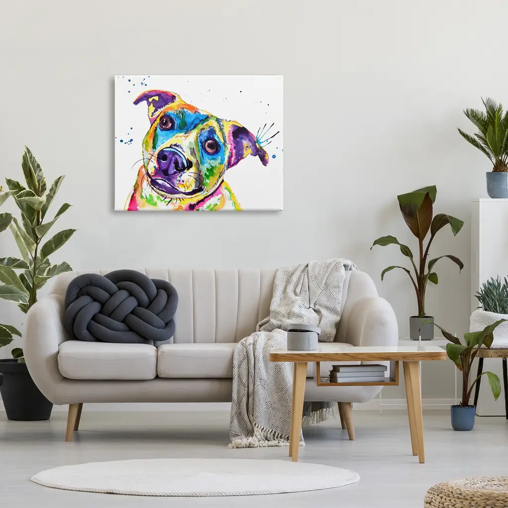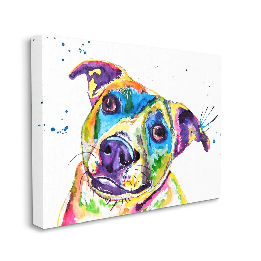Proudly made in the USA, Our stretched canvas is created with the highest standards. We use only the highest quality inks and canvas on our in house Mimaki printers, and then hand cut and stretch each piece over a 1.5 inch thick wooden frame for hanging. The art comes ready to hang with no installation required. Room Type: Living Room, Den, Hallway, Office, Entryway, Study, Dining Room or Bedroom, Guest Room, Studio, Dorm or BoudoirFeatures: Dimensions: 20 x 1.5 x 16 InchesStretched Canvas Sizes Include Standard: 20 x 1.5 x 16 Large: 30 x 1.5 x 20 X-Large: 40 x 1.5 x 30 Oversized: 48 x 1.5 x 36Wall Art is Ready to Hang - No Installation or Hardware Needed. For Easy Set Up Lean or Layer Artwork on Shelf or Against Wall.Our stretched canvas is created with the highest standards. We use only the highest quality inks and canvas on our in house Mimaki printers, and then hand cut and stretch each piece over a 1.5 inch thick wooden frame for hanging. Made In USA.Artwork Relates To: Modern, Animal, Canine, Mammal, Pet, DogDesign by Jen Seeley