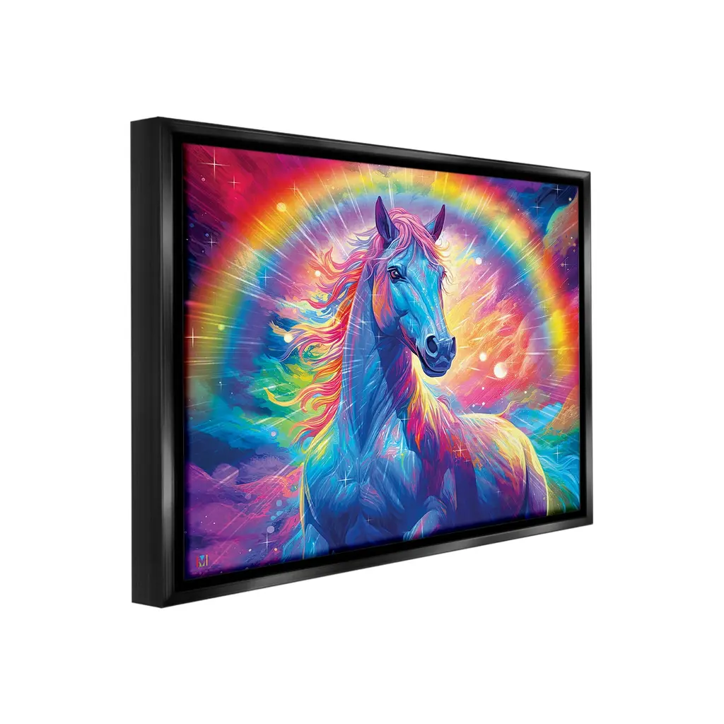 Elevate your home or office to the next level with Stupell Framed Floating Canvas Wall Art. Our premium hand-stretched canvas is mounted securely into a sturdy lightweight frame. The museum-style gap between the wrapped canvas and the box frame gives the illusion of floating artwork. Stupell Wall Art is made in the USA.Features: Dimensions: 21 x 1.7 x 17 Frame, 20 x 1.5 x 16 Canvas ArtFloating Frame Canvas Products are available in sizes 21"x17" and 31"x25". All Floating Frame Canvas Products have a 1.7" Depth.Wall Art is Ready to Hang with Hardware Free Hanging. No Installation required. For Easy Set Up Lean or Layer Artwork on Shelf or Against Wall. Artwork is Permently Fixed into the Frame.Our elevated 1.7" Thick Floating Frame is the perfect complement to our canvas style Wall Art. We use only the highest quality inks in house with industry leading printing solutions. Canvas is hand stretched over a durable wood foundation and then mounted securly into a Modern Box Frame. Made in the USA.Artwork Relates To: Modern, Animal, Mammal, Horse, Rainbow, Nature, AbstractDesign by Michael David Ward