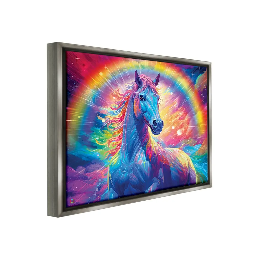 Elevate your home or office to the next level with Stupell Framed Floating Canvas Wall Art. Our premium hand-stretched canvas is mounted securely into a sturdy lightweight frame. The museum-style gap between the wrapped canvas and the box frame gives the illusion of floating artwork. Stupell Wall Art is made in the USA.Features: Dimensions: 21 x 1.7 x 17 Frame, 20 x 1.5 x 16 Canvas ArtFloating Frame Canvas Products are available in sizes 21"x17" and 31"x25". All Floating Frame Canvas Products have a 1.7" Depth.Wall Art is Ready to Hang with Hardware Free Hanging. No Installation required. For Easy Set Up Lean or Layer Artwork on Shelf or Against Wall. Artwork is Permently Fixed into the Frame.Our elevated 1.7" Thick Floating Frame is the perfect complement to our canvas style Wall Art. We use only the highest quality inks in house with industry leading printing solutions. Canvas is hand stretched over a durable wood foundation and then mounted securly into a Modern Box Frame. Made in the USA.Artwork Relates To: Modern, Animal, Mammal, Horse, Rainbow, Nature, AbstractDesign by Michael David Ward