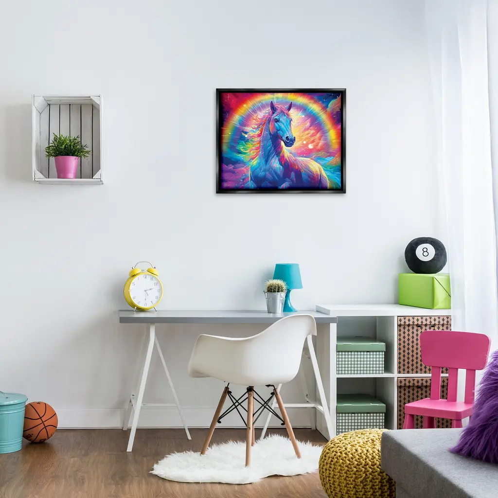 Elevate your home or office to the next level with Stupell Framed Floating Canvas Wall Art. Our premium hand-stretched canvas is mounted securely into a sturdy lightweight frame. The museum-style gap between the wrapped canvas and the box frame gives the illusion of floating artwork. Stupell Wall Art is made in the USA.Features: Dimensions: 21 x 1.7 x 17 Frame, 20 x 1.5 x 16 Canvas ArtFloating Frame Canvas Products are available in sizes 21"x17" and 31"x25". All Floating Frame Canvas Products have a 1.7" Depth.Wall Art is Ready to Hang with Hardware Free Hanging. No Installation required. For Easy Set Up Lean or Layer Artwork on Shelf or Against Wall. Artwork is Permently Fixed into the Frame.Our elevated 1.7" Thick Floating Frame is the perfect complement to our canvas style Wall Art. We use only the highest quality inks in house with industry leading printing solutions. Canvas is hand stretched over a durable wood foundation and then mounted securly into a Modern Box Frame. Made in the USA.Artwork Relates To: Modern, Animal, Mammal, Horse, Rainbow, Nature, AbstractDesign by Michael David Ward