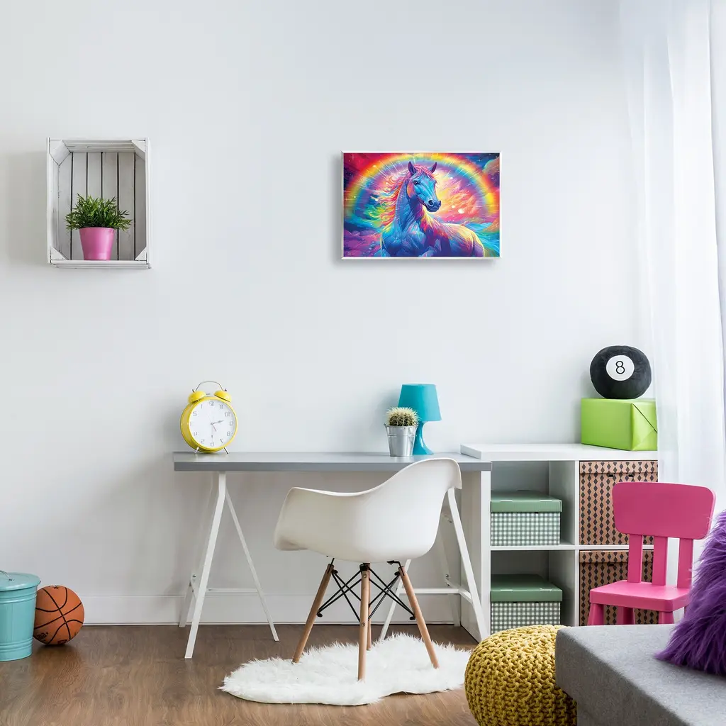 Our wall plaques start as high-quality lithograph prints mounted on durable 0.5-inch thick MDF wood. Each piece is hand finished and comes with a fresh layer of white foil on the sides to give it a crisp, clean look. Plaques arrive ready to hang without installation and come with removable plastic corners to keep them from damage in transit. Stupell Wall Art is made in the USA.Features: Dimensions: 15 x 0.5 x 10 InchesWall Plaque Product Sizes Include 15"x10" and 19"x13". All wall plaque products have a 0.5" Depth. Wall Art is Ready to Hang with Hardware Free Hanging. No installation required. For Easy Set Up Lean or Layer Artwork on Shelf or Against Wall.All of our wall plaques start off as high quality lithograph prints that are then mounted on durable 0.5 inch thick MDF wood. Each piece is hand finished and comes with a fresh layer of foil on the sides to give it a crisp clean look. Made In USA.Artwork Relates To: Modern, Animal, Mammal, Horse, Rainbow, Nature, AbstractDesign by Michael David Ward