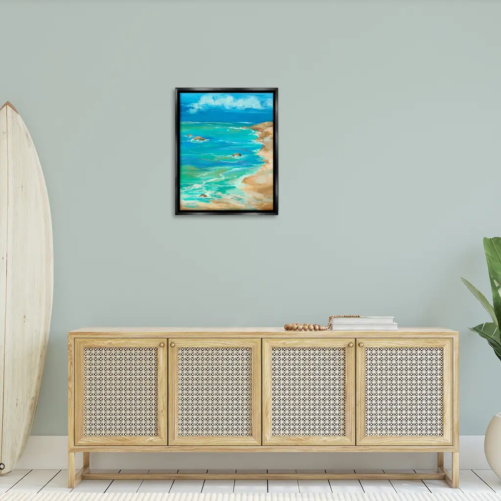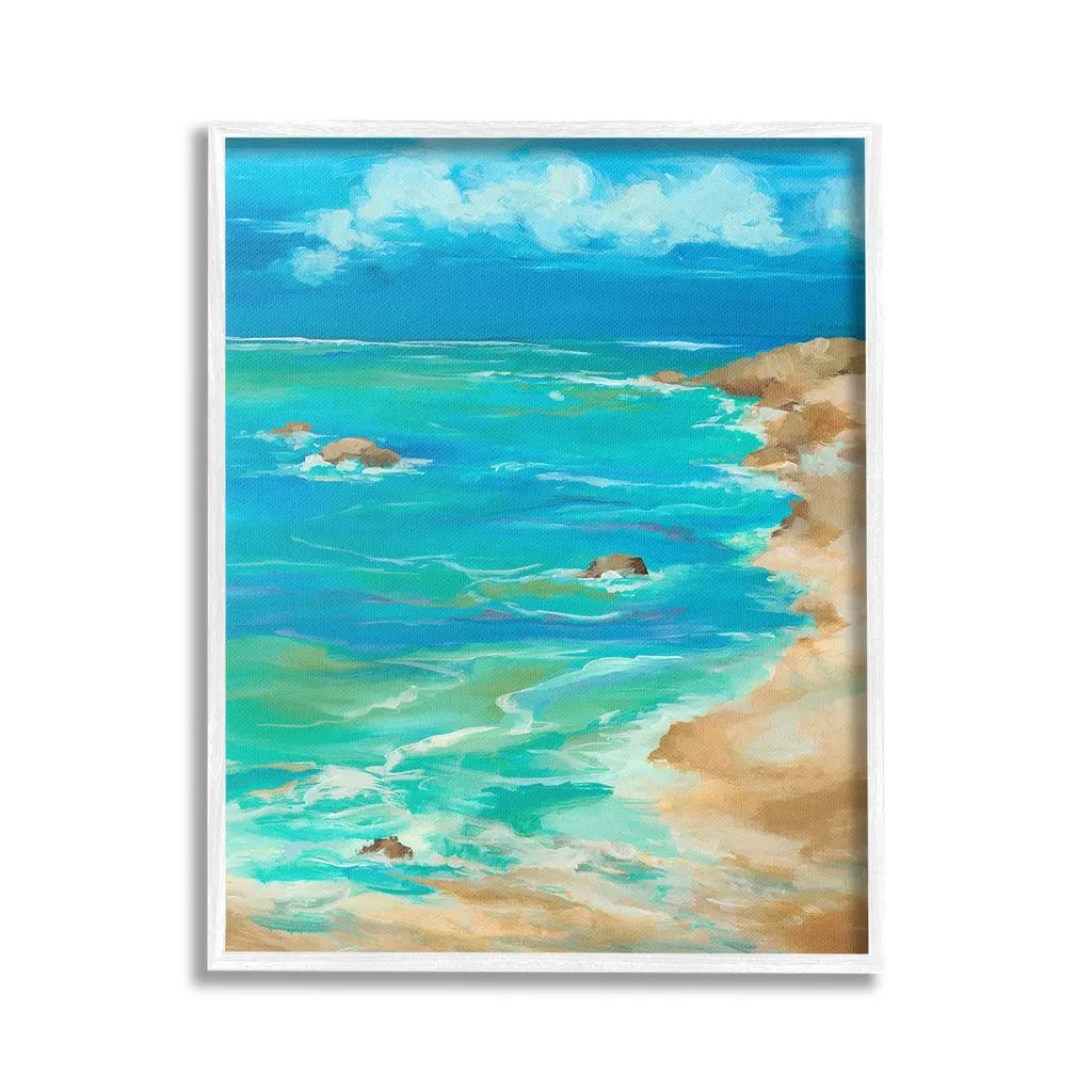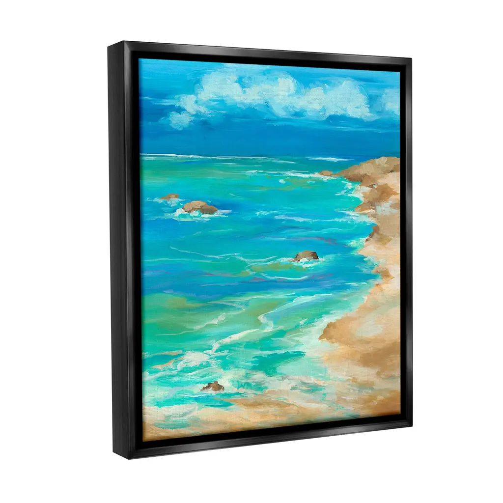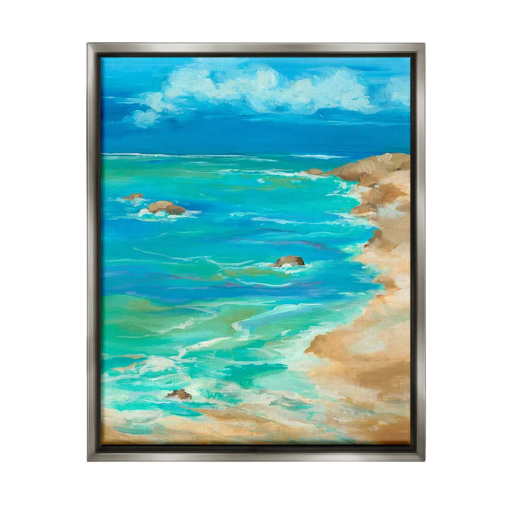 Elevate your home or office to the next level with Stupell Framed Floating Canvas Wall Art. Our premium hand-stretched canvas is mounted securely into a sturdy lightweight frame. The museum-style gap between the wrapped canvas and the box frame gives the illusion of floating artwork. Stupell Wall Art is made in the USA.Features: Dimensions: 17 x 1.7 x 21 Frame, 16 x 1.5 x 20 Canvas ArtFloating Frame Canvas Products are available in sizes 17"x21" and 25"x31". All Floating Frame Canvas Products have a 1.7" Depth.Wall Art is Ready to Hang with Hardware Free Hanging. No Installation required. For Easy Set Up Lean or Layer Artwork on Shelf or Against Wall. Artwork is Permently Fixed into the Frame.Our elevated 1.7" Thick Floating Frame is the perfect complement to our canvas style Wall Art. We use only the highest quality inks in house with industry leading printing solutions. Canvas is hand stretched over a durable wood foundation and then mounted securly into a Modern Box Frame. Made in the USA.Artwork Relates To: Painting, Scenery, Horizon, Cloud, Sea, Water, Shore, Coast, Rocks, CliffDesign by Liz Jardine
