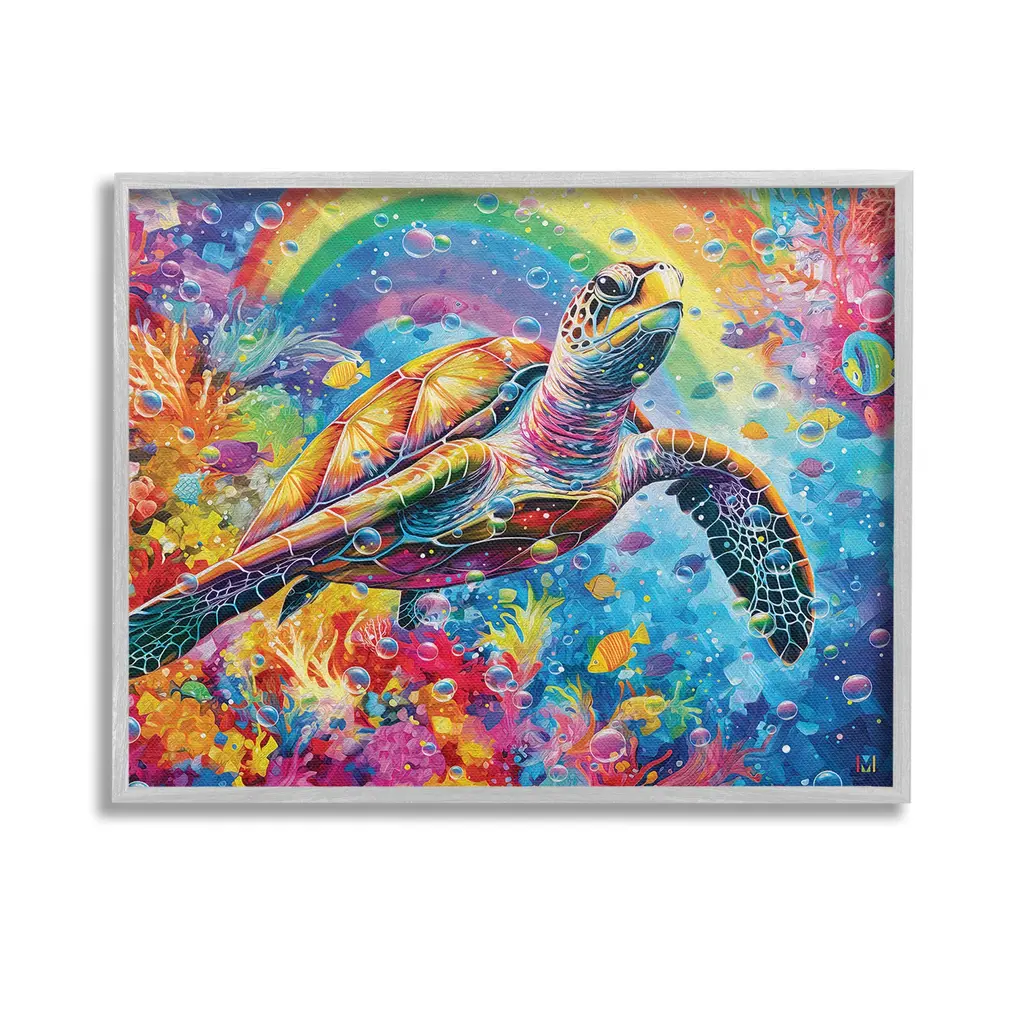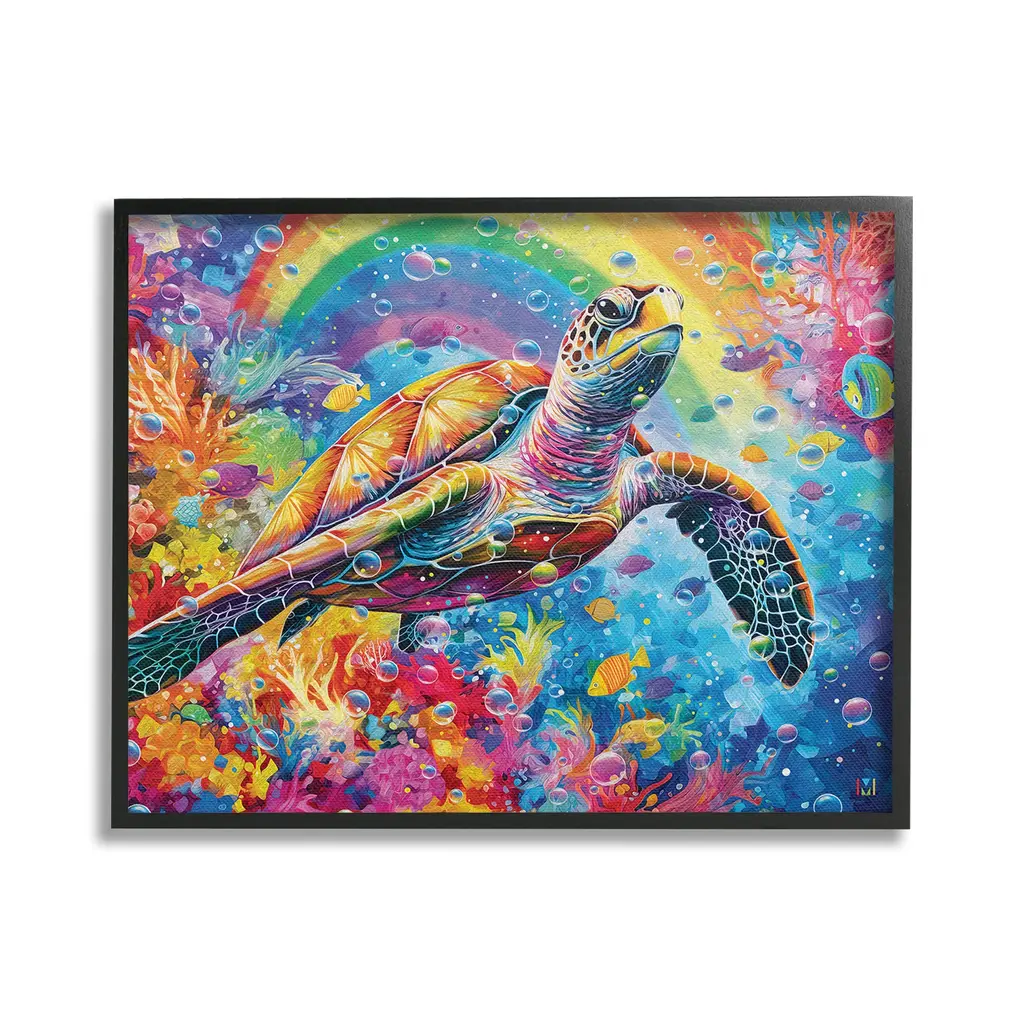 Add dimension to any room with our textured Framed Giclee Artwork. Our framed artwork is securely mounted into a 1.5-inch thick wood grain frame and ready to hang. Frames are available in three alluring styles: black, gray farmhouse and white. In addition, you should check out our oversized options if you want a statement piece. Stupell Wall Art is made in the USA.Features: Dimensions: 14 x 1.5 x 11 FramedFramed Giclee Products are available in the sizes 14"x11", 20"x16" or 30"x24". All Framed Giclee Products have a 1.5" Depth. Wall Art is Ready to Hang with Hardware Free Hanging. No installation required. For Easy Set Up Lean or Layer Artwork on Shelf or Against Wall.Our giclée prints are carefully mounted on a durable MDF backing, and then perfectly finished in a 1.5 inch thick woodgrain frame. Mounted frame colors include black, gray farmhouse and white. Made In USA.Artwork Relates To: Sea, Water, Animal, Reef, Sea Life, Fish, Turtle, Aquatic, DolphinDesign by Michael David Ward