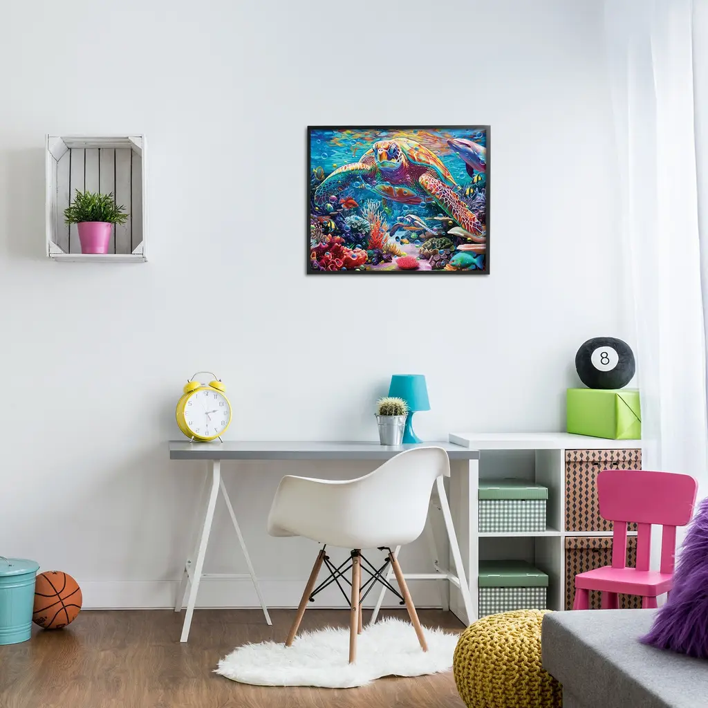 Add dimension to any room with our textured Framed Giclee Artwork. Our framed artwork is securely mounted into a 1.5-inch thick wood grain frame and ready to hang. Frames are available in three alluring styles: black, gray farmhouse and white. In addition, you should check out our oversized options if you want a statement piece. Stupell Wall Art is made in the USA.Features: Dimensions: 14 x 1.5 x 11 FramedFramed Giclee Products are available in the sizes 14"x11", 20"x16" or 30"x24". All Framed Giclee Products have a 1.5" Depth. Wall Art is Ready to Hang with Hardware Free Hanging. No installation required. For Easy Set Up Lean or Layer Artwork on Shelf or Against Wall.Our giclée prints are carefully mounted on a durable MDF backing, and then perfectly finished in a 1.5 inch thick woodgrain frame. Mounted frame colors include black, gray farmhouse and white. Made In USA.Artwork Relates To: Sea, Water, Animal, Reef, Sea Life, Fish, Turtle, Aquatic, DolphinDesign by Michael David Ward