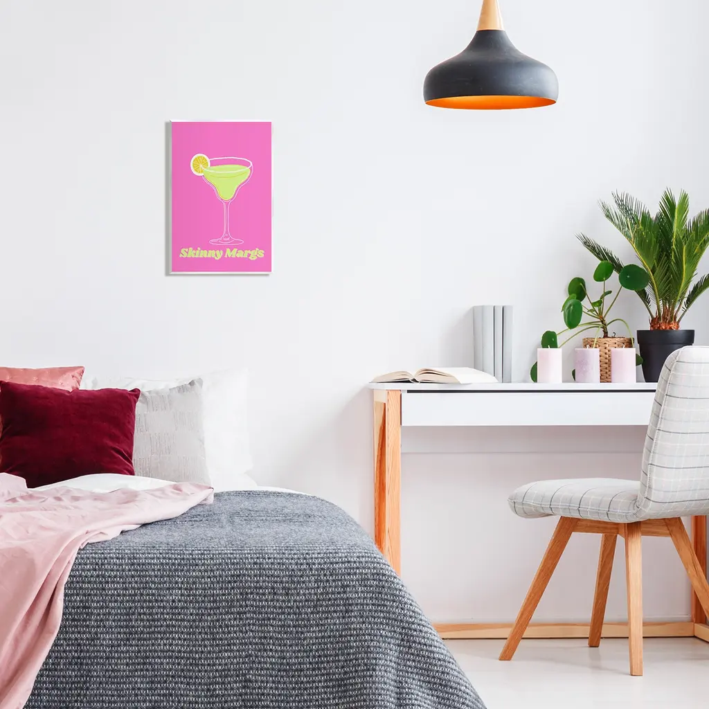 Our wall plaques start as high-quality lithograph prints mounted on durable 0.5-inch thick MDF wood. Each piece is hand finished and comes with a fresh layer of white foil on the sides to give it a crisp, clean look. Plaques arrive ready to hang without installation and come with removable plastic corners to keep them from damage in transit. Wall Art is made in the USA.Features: Dimensions: 10 x 0.5 x 15 InchesWall Plaque Sizes Include Standard: 10 x 0.5 x 15 Oversized: 13 x 0.5 x 19Wall Art is Ready to Hang with Hardware Free Hanging. No installation required. For Easy Set Up Lean or Layer Artwork on Shelf or Against Wall.All of our wall plaques start off as high quality lithograph prints that are then mounted on durable 0.5 inch thick MDF wood. Each piece is hand finished and comes with a fresh layer of foil on the sides to give it a crisp clean look. Made In USA.Artwork Relates To: Alcohol, Cocktail, Margarita, Vintage, Bold, Vivid, Skinny MargsDesign by House of Lulu