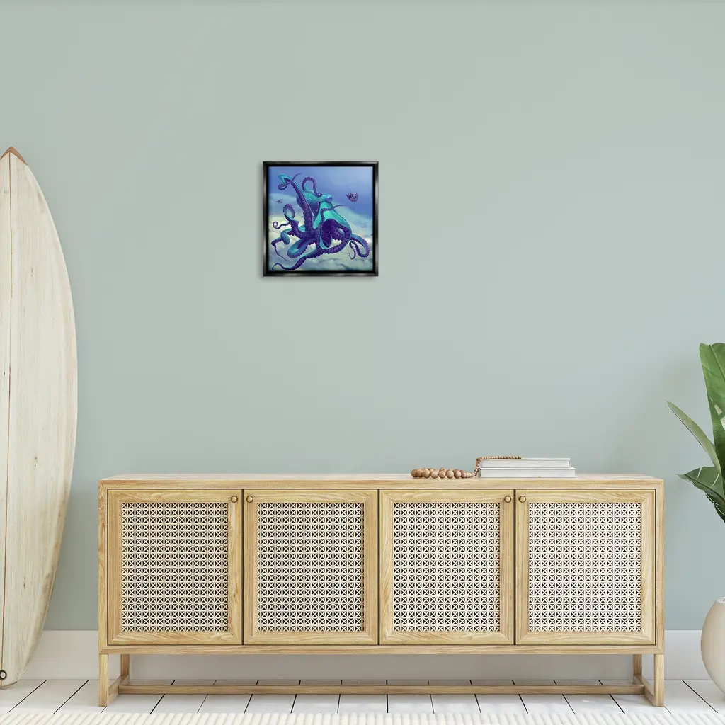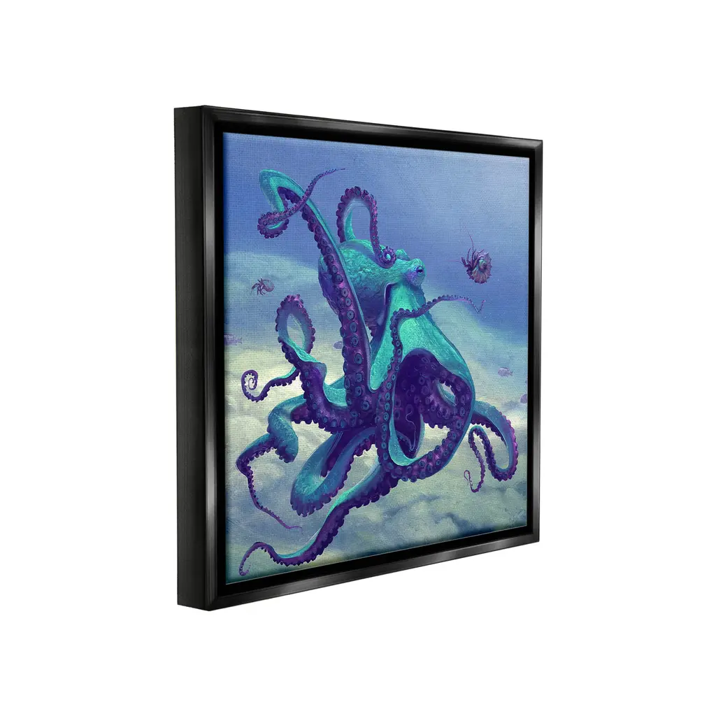 Elevate your home or office to the next level with Stupell Framed Floating Canvas Wall Art. Our premium hand-stretched canvas is mounted securely into a sturdy lightweight frame. The museum-style gap between the wrapped canvas and the box frame gives the illusion of floating artwork. Stupell Wall Art is made in the USA.Features: Dimensions: 18 x 1.7 x 18 Frame, 17 x 1.5 x 17 Canvas ArtFloating Frame Canvas Products are available in sizes 18"x18" and 25"x25". All Floating Frame Canvas Products have a 1.7" Depth.Wall Art is Ready to Hang with Hardware Free Hanging. No Installation required. For Easy Set Up Lean or Layer Artwork on Shelf or Against Wall. Artwork is Permently Fixed into the Frame.Our elevated 1.7" Thick Floating Frame is the perfect complement to our canvas style Wall Art. We use only the highest quality inks in house with industry leading printing solutions. Canvas is hand stretched over a durable wood foundation and then mounted securly into a Modern Box Frame. Made in the USA.Artwork Relates To: Animal, Sea Life, Invertebrate, Octopus, Marine, Ocean, Nautical, BeachDesign by Vlad Mel