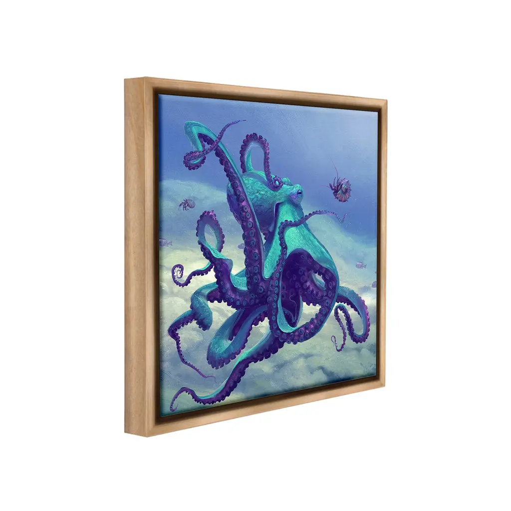 Elevate your home or office to the next level with Stupell Framed Floating Canvas Wall Art. Our premium hand-stretched canvas is mounted securely into a sturdy lightweight frame. The museum-style gap between the wrapped canvas and the box frame gives the illusion of floating artwork. Stupell Wall Art is made in the USA.Features: Dimensions: 18 x 1.7 x 18 Frame, 17 x 1.5 x 17 Canvas ArtFloating Frame Canvas Products are available in sizes 18"x18" and 25"x25". All Floating Frame Canvas Products have a 1.7" Depth.Wall Art is Ready to Hang with Hardware Free Hanging. No Installation required. For Easy Set Up Lean or Layer Artwork on Shelf or Against Wall. Artwork is Permently Fixed into the Frame.Our elevated 1.7" Thick Floating Frame is the perfect complement to our canvas style Wall Art. We use only the highest quality inks in house with industry leading printing solutions. Canvas is hand stretched over a durable wood foundation and then mounted securly into a Modern Box Frame. Made in the USA.Artwork Relates To: Animal, Sea Life, Invertebrate, Octopus, Marine, Ocean, Nautical, BeachDesign by Vlad Mel