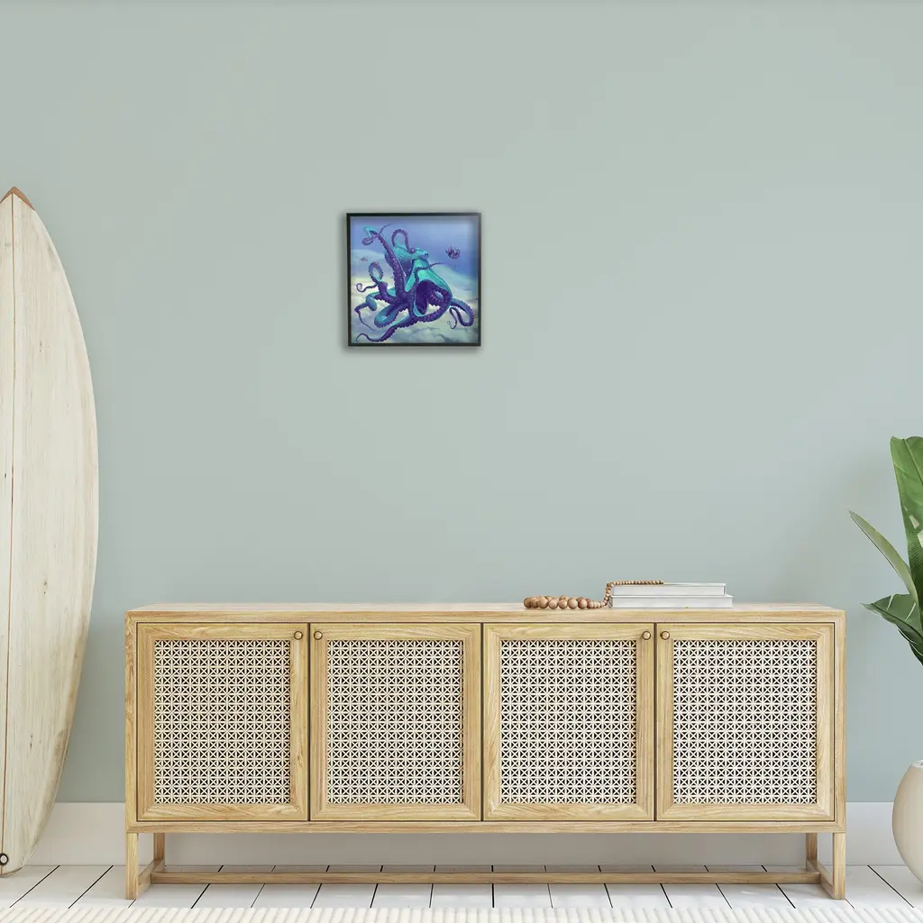Add dimension to any room with our textured Framed Giclee Artwork. Our framed artwork is securely mounted into a 1.5-inch thick wood grain frame and ready to hang. Frames are available in three alluring styles: black, gray farmhouse and white. In addition, you should check out our oversized options if you want a statement piece. Stupell Wall Art is made in the USA.Features: Dimensions: 12 x 1.5 x 12 FramedFramed Giclee Product Sizes Include 12"x12", 17"x17", and 24"x24". Framed Giclee Products have a 1.5" Depth. Wall Art is Ready to Hang with Hardware Free Hanging. No installation required. For Easy Set Up Lean or Layer Artwork on Shelf or Against Wall.Our giclée prints are carefully mounted on a durable MDF backing, and then perfectly finished in a 1.5 inch thick woodgrain frame. Mounted frame colors include black, gray farmhouse and white. Made In USA.Artwork Relates To: Animal, Sea Life, Invertebrate, Octopus, Marine, Ocean, Nautical, BeachDesign by Vlad Mel