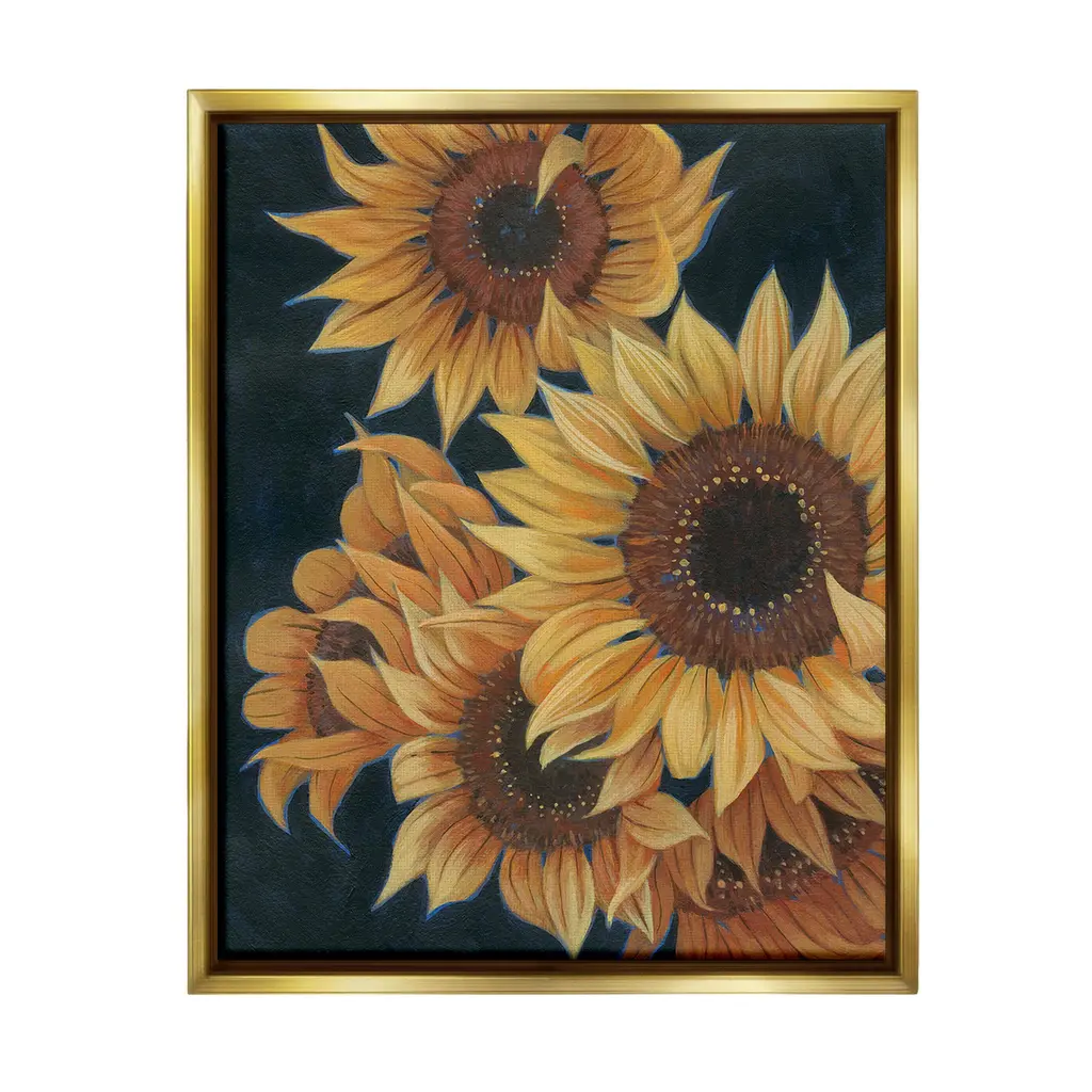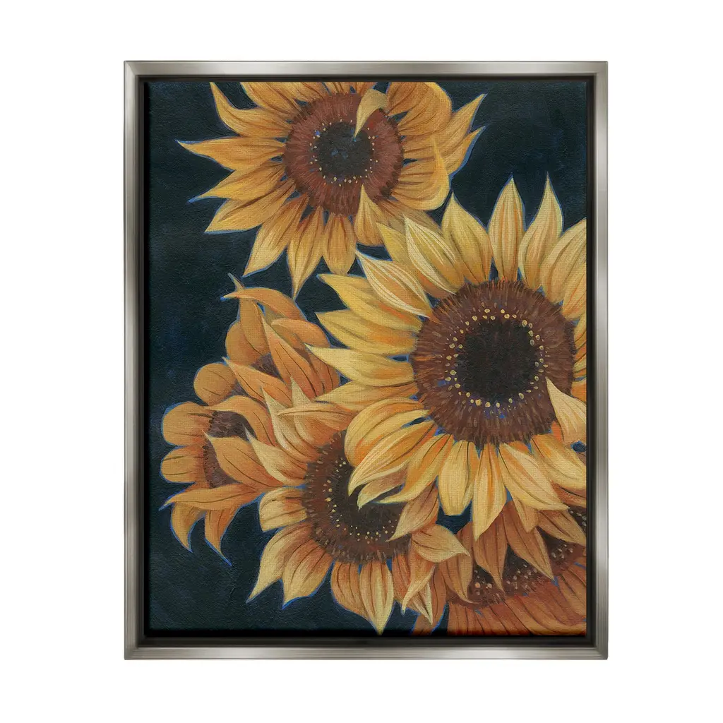 Elevate your home or office to the next level with Stupell Framed Floating Canvas Wall Art. Our premium hand-stretched canvas is mounted securely into a sturdy lightweight frame. The museum-style gap between the wrapped canvas and the box frame gives the illusion of floating artwork. Stupell Wall Art is made in the USA.Features: Dimensions: 18 x 1.7 x 18 Frame, 17 x 1.5 x 17 Canvas ArtFloating Frame Canvas Products are available in sizes 18"x18" and 25"x25". All Floating Frame Canvas Products have a 1.7" Depth.Wall Art is Ready to Hang with Hardware Free Hanging. No Installation required. For Easy Set Up Lean or Layer Artwork on Shelf or Against Wall. Artwork is Permently Fixed into the Frame.Our elevated 1.7" Thick Floating Frame is the perfect complement to our canvas style Wall Art. We use only the highest quality inks in house with industry leading printing solutions. Canvas is hand stretched over a durable wood foundation and then mounted securly into a Modern Box Frame. Made in the USA.Artwork Relates To: Flower, Plant, Sunflower, Petal, Country, Close UpDesign by Jessica Manelis