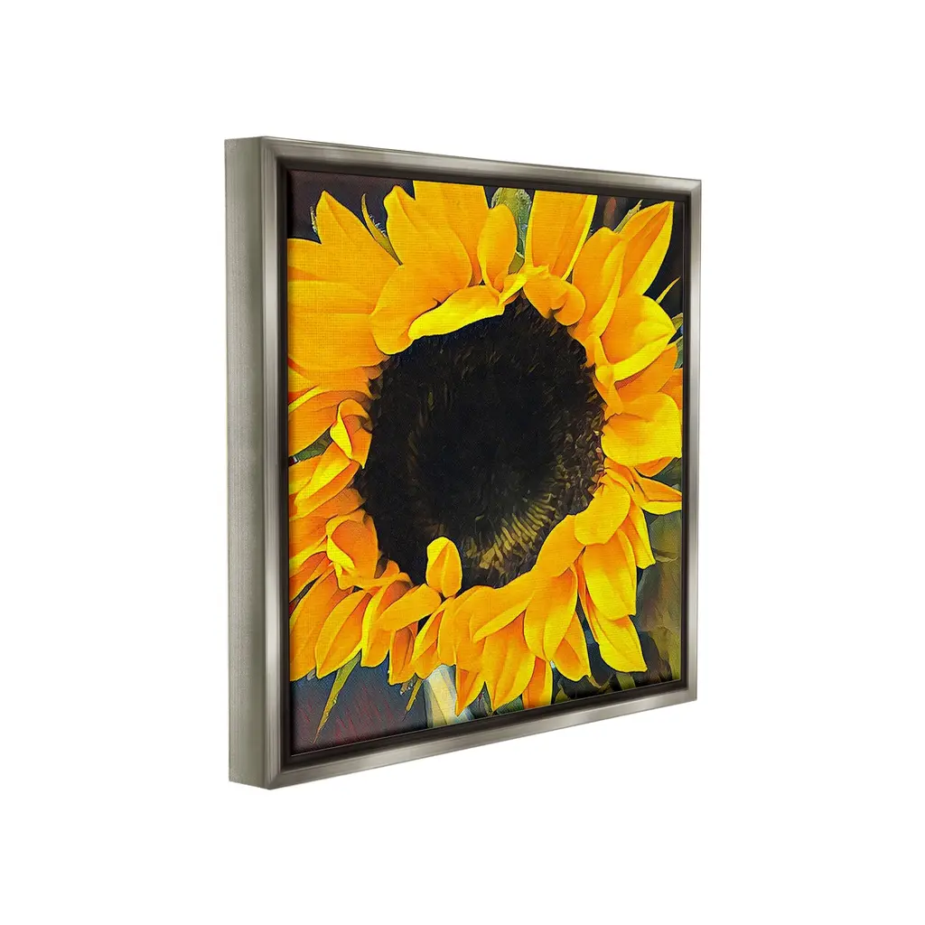 Elevate your home or office to the next level with Stupell Framed Floating Canvas Wall Art. Our premium hand-stretched canvas is mounted securely into a sturdy lightweight frame. The museum-style gap between the wrapped canvas and the box frame gives the illusion of floating artwork. Stupell Wall Art is made in the USA.Features: Dimensions: 18 x 1.7 x 18 Frame, 17 x 1.5 x 17 Canvas ArtFloating Frame Canvas Products are available in sizes 18"x18" and 25"x25". All Floating Frame Canvas Products have a 1.7" Depth.Wall Art is Ready to Hang with Hardware Free Hanging. No Installation required. For Easy Set Up Lean or Layer Artwork on Shelf or Against Wall. Artwork is Permently Fixed into the Frame.Our elevated 1.7" Thick Floating Frame is the perfect complement to our canvas style Wall Art. We use only the highest quality inks in house with industry leading printing solutions. Canvas is hand stretched over a durable wood foundation and then mounted securly into a Modern Box Frame. Made in the USA.Artwork Relates To: Flower, Plant, Sunflower, Petal, Country, Close UpDesign by Jessica Manelis