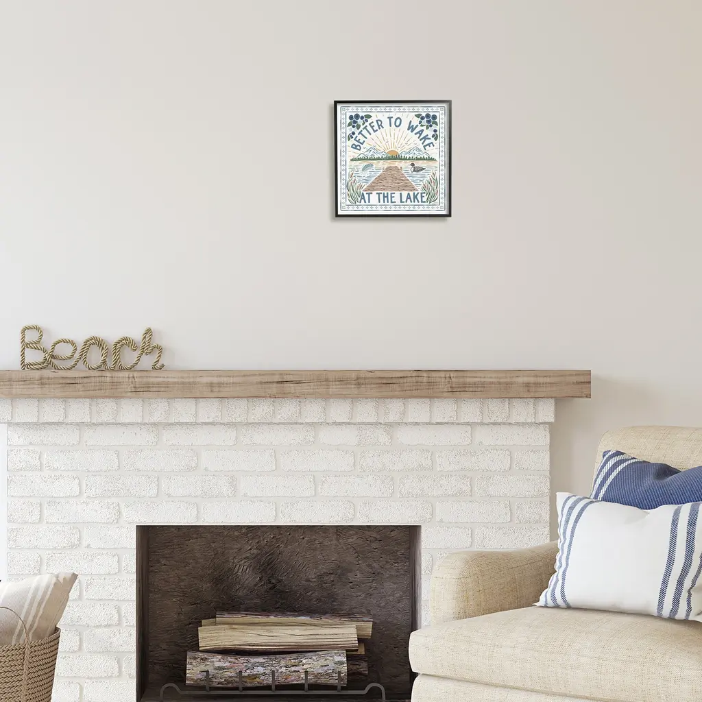 Stupell Wake At Lake Phrase Framed Giclee Art Design By Laura Marshall - 12 X 12 - Black