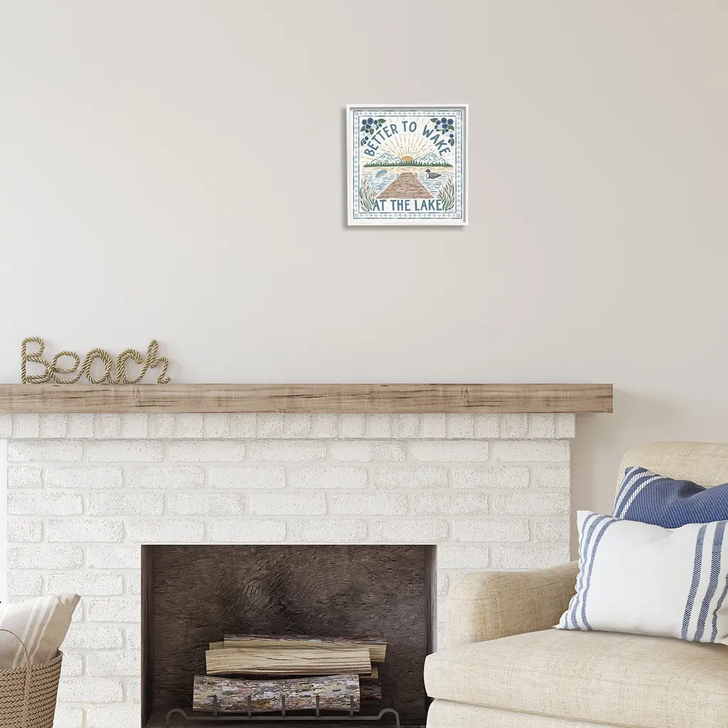 Stupell Wake At Lake Phrase Framed Giclee Art Design By Laura Marshall - 12 X 12 - White