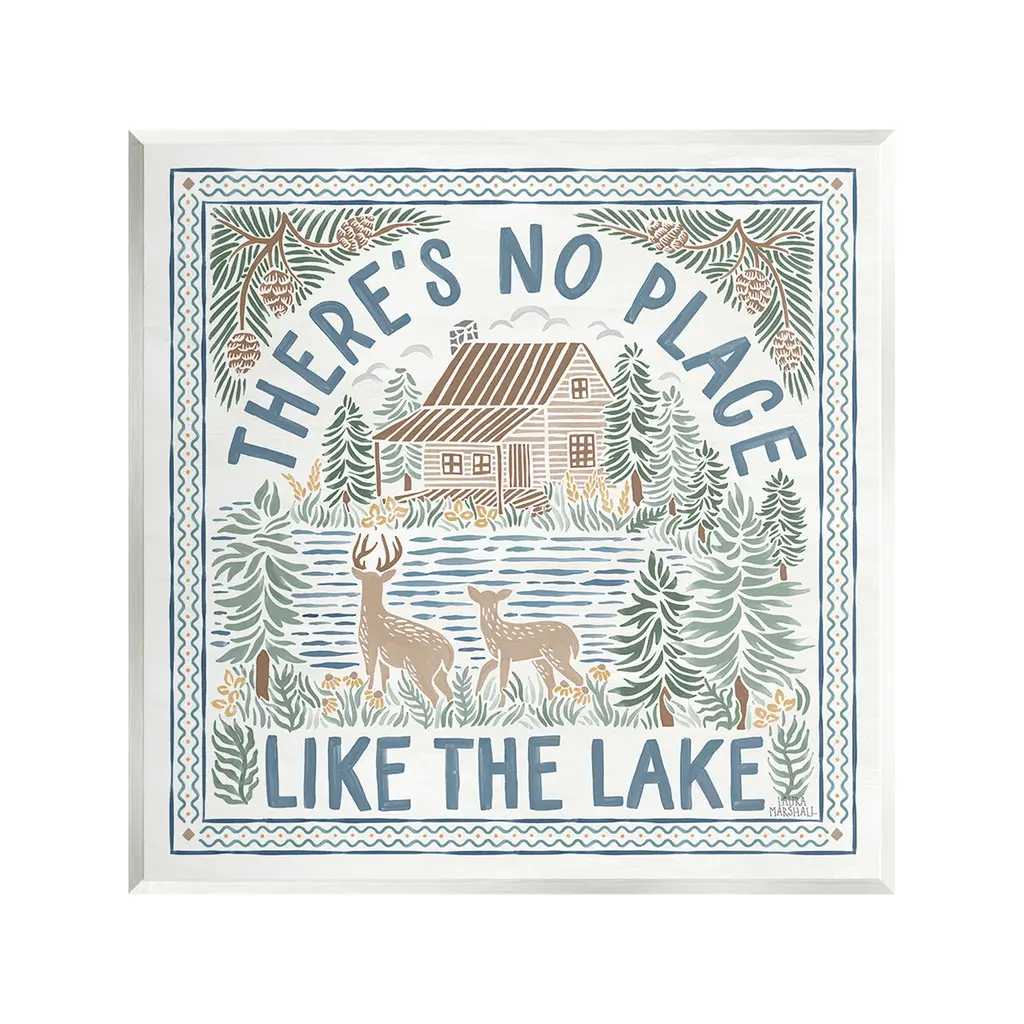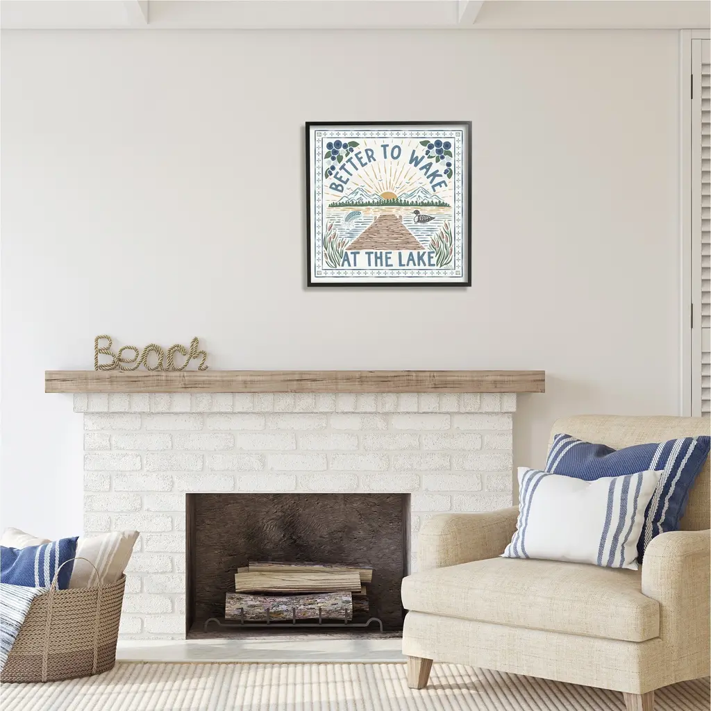Stupell Wake At Lake Phrase Framed Giclee Art Design By Laura Marshall - 24 X 24 - Black