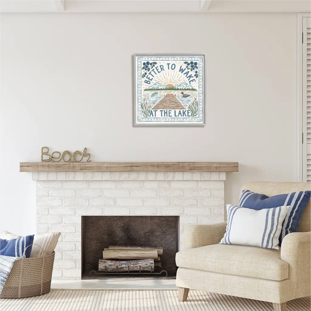 Stupell Wake At Lake Phrase Framed Giclee Art Design By Laura Marshall - 24 X 24 - Grey