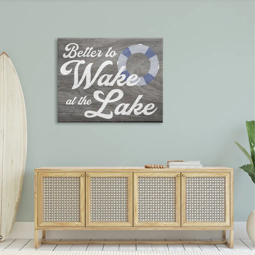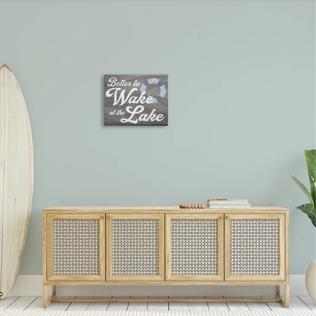 Stupell Wake At Lake Rustic Cabin Sign Life Preserver Ring Canvas Wall Art - Grey - 40 X 30