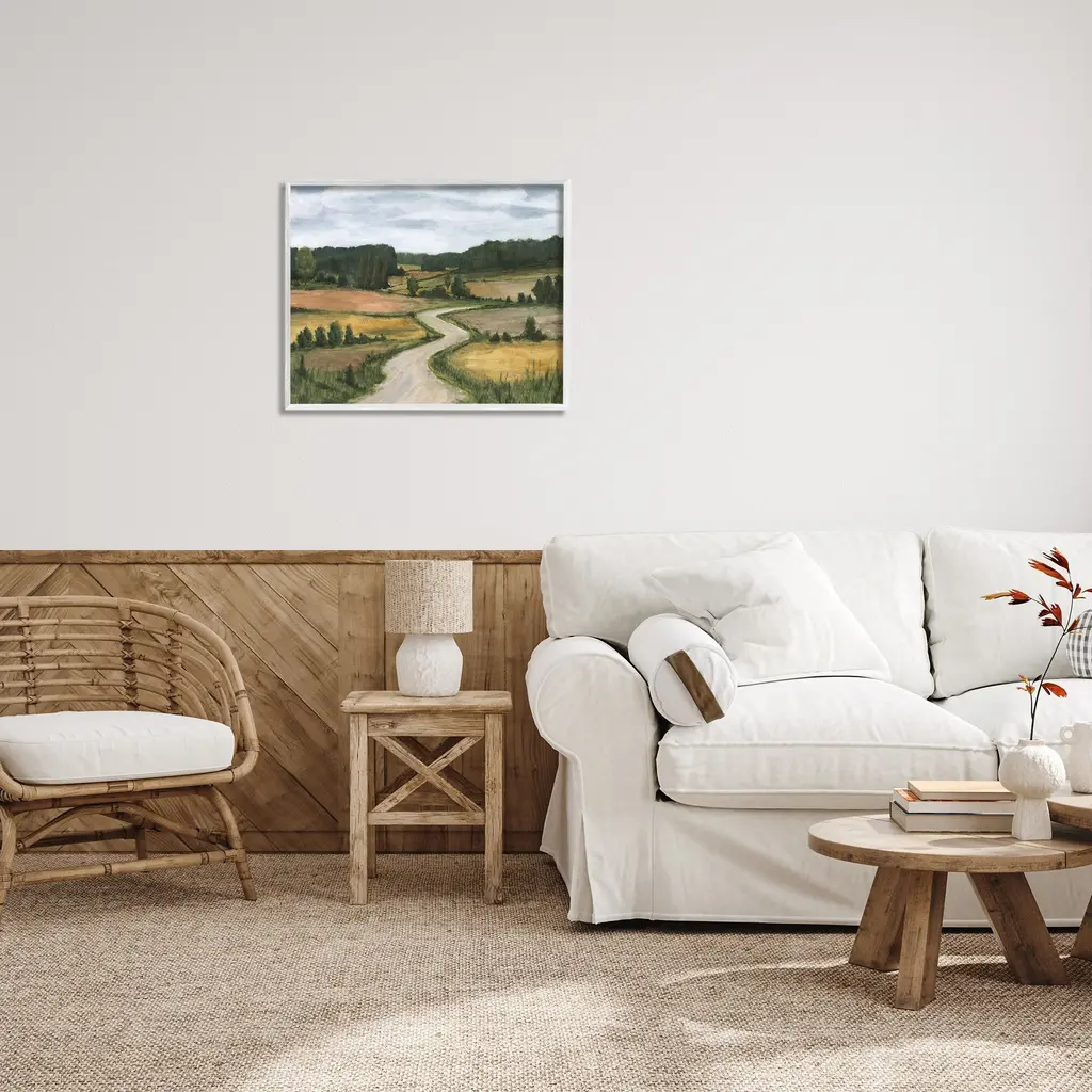 Add dimension to any room with our textured Framed Giclee Artwork. Our framed artwork is securely mounted into a 1.5-inch thick wood grain frame and ready to hang. Frames are available in three alluring styles: black, gray farmhouse and white. In addition, you should check out our oversized options if you want a statement piece. Stupell Wall Art is made in the USA.Features: Dimensions: 14 x 1.5 x 11 FramedFramed Giclee Products are available in the sizes 14"x11", 20"x16" or 30"x24". All Framed Giclee Products have a 1.5" Depth. Wall Art is Ready to Hang with Hardware Free Hanging. No installation required. For Easy Set Up Lean or Layer Artwork on Shelf or Against Wall.Our giclée prints are carefully mounted on a durable MDF backing, and then perfectly finished in a 1.5 inch thick woodgrain frame. Mounted frame colors include black, gray farmhouse and white. Made In USA.Artwork Relates To: Plant, Tree, Path, Road, Oak, Sycamore, Field, Grassland, Nature, Landscape, FarmDesign by Michael Willett