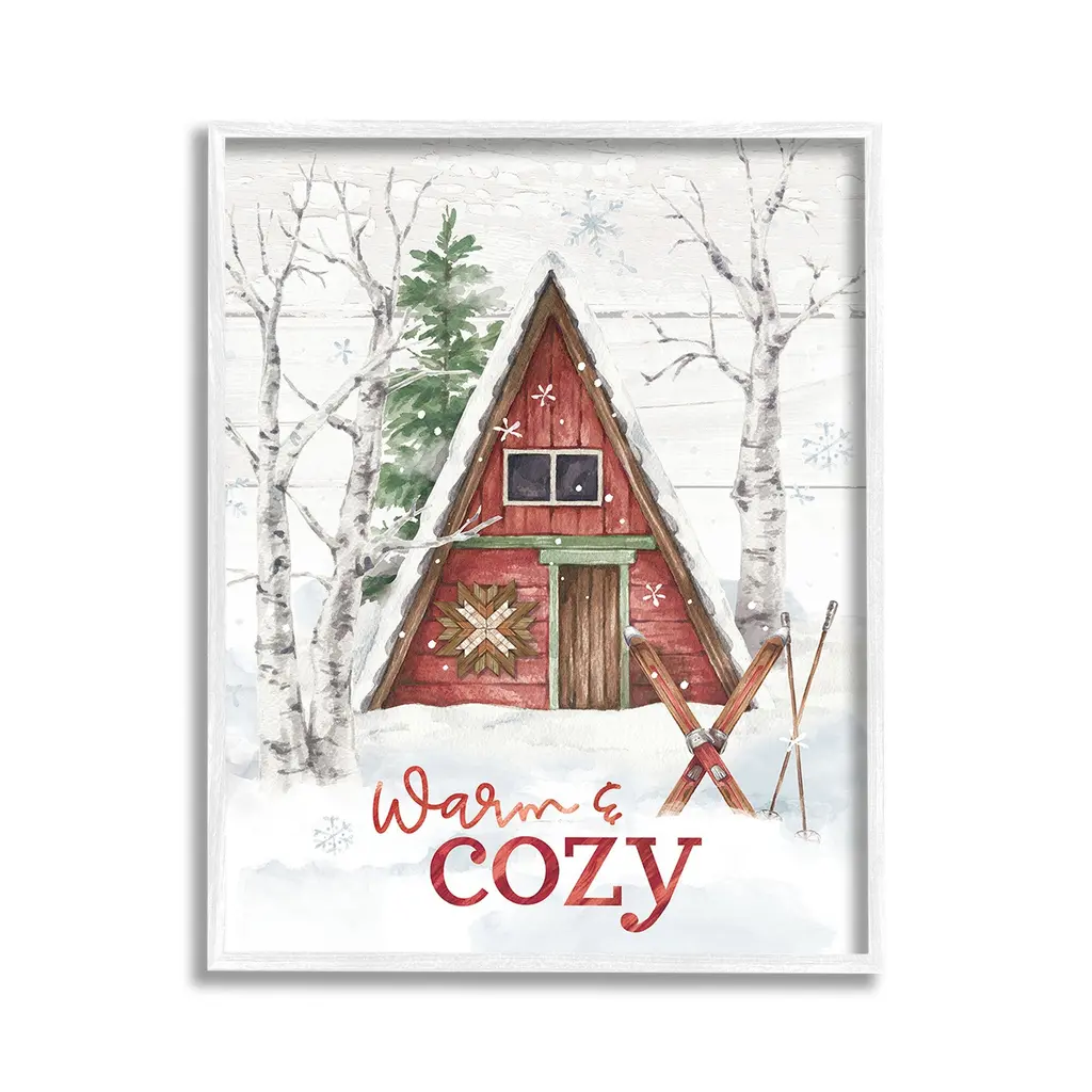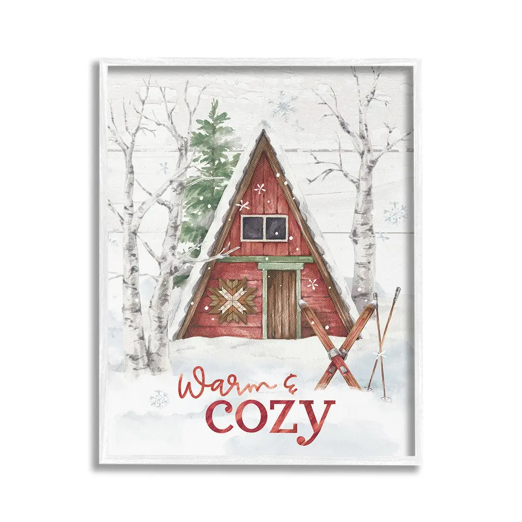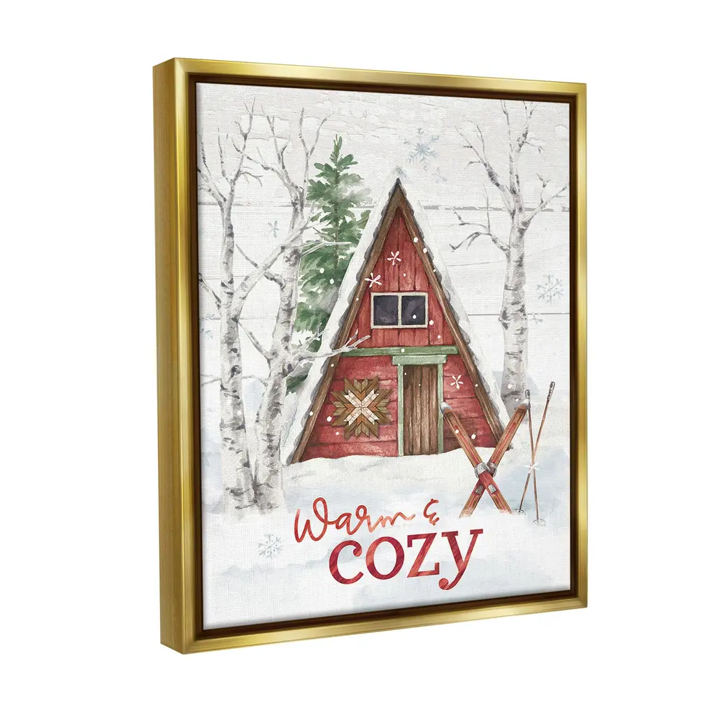 Elevate your home or office to the next level with Stupell Framed Floating Canvas Wall Art. Our premium hand-stretched canvas is mounted securely into a sturdy lightweight frame. The museum-style gap between the wrapped canvas and the box frame gives the illusion of floating artwork. Stupell Wall Art is made in the USA.Features: Dimensions: 17 x 1.7 x 21 Frame, 16 x 1.5 x 20 Canvas ArtFloating Frame Canvas Products are available in sizes 17"x21" and 25"x31". All Floating Frame Canvas Products have a 1.7" Depth.Wall Art is Ready to Hang with Hardware Free Hanging. No Installation required. For Easy Set Up Lean or Layer Artwork on Shelf or Against Wall. Artwork is Permently Fixed into the Frame.Our elevated 1.7" Thick Floating Frame is the perfect complement to our canvas style Wall Art. We use only the highest quality inks in house with industry leading printing solutions. Canvas is hand stretched over a durable wood foundation and then mounted securly into a Modern Box Frame. Made in the USA.Artwork Relates To: Building, House, Countryside, Hut, Nature, Snow, Winter, Woodland, Cabin, Lodge, Trees, Warm & CozyDesign by Courtney Morgenstern