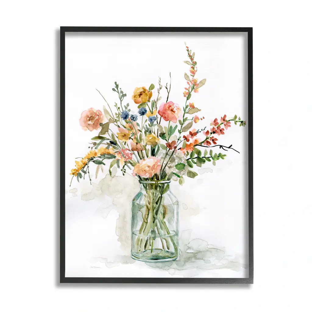 Stupell Warm Summer Meadow Floral Bouquet Still Life Painting Framed Wall Art - 11 X 14 - Grey