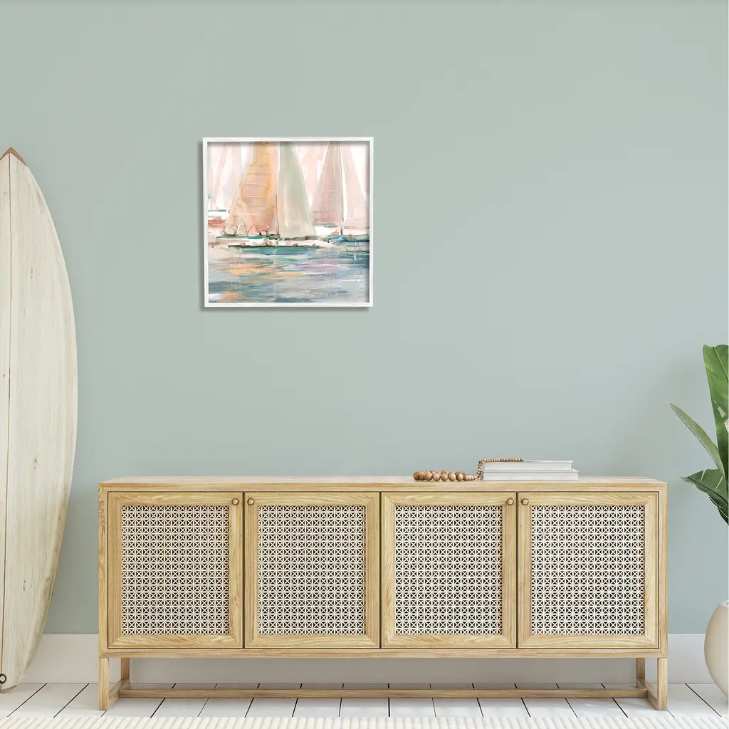 Stupell Warm Sunlit Sailboats Reflection Ocean Water Surface Framed Wall Art, Design By Carol Robinson - 24 X 24 - White