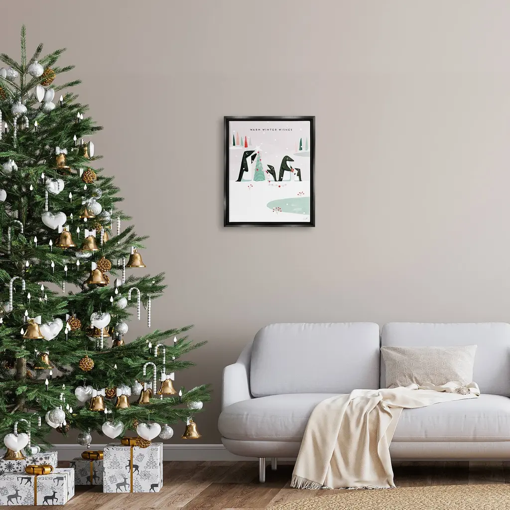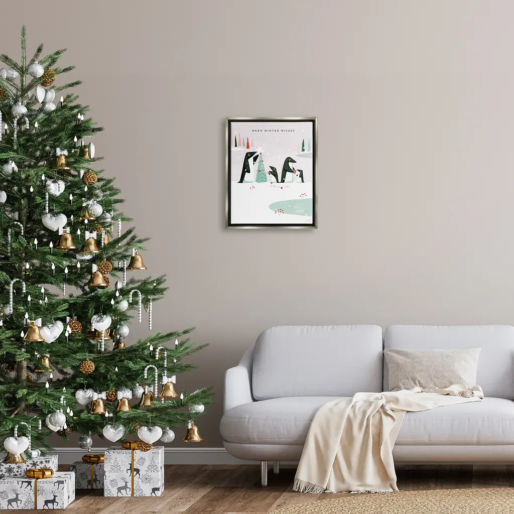 Elevate your home or office to the next level with Stupell Framed Floating Canvas Wall Art. Our premium hand-stretched canvas is mounted securely into a sturdy lightweight frame. The museum-style gap between the wrapped canvas and the box frame gives the illusion of floating artwork. Stupell Wall Art is made in the USA.Features: Dimensions: 17 x 1.7 x 21 Frame, 16 x 1.5 x 20 Canvas ArtFloating Frame Sizes Include Standard: 17 x 1.7 x 21 Oversized: 25 x 1.7 x 31Wall Art is Ready to Hang - No Installation or Hardware Needed. For Easy Set Up Lean or Layer Artwork on Shelf or Against Wall.Our elevated 1.7" Thick Floating Frame is the perfect complement to our canvas style Wall Art. We use only the highest quality inks in house with industry leading printing solutions. Canvas is hand stretched over a durable wood foundation and then mounted securly into a Modern Box Frame. Made in the USA.Artwork Relates To: Penguin, Christmas Tree, Winter, Snow, Holiday, Seasonal, Bird, Animal, Warm Winter WishesDesign by Andrew Thornton