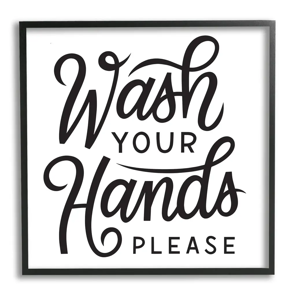 Stupell Wash Hands Please Bathroom Typography Text Sign Framed Wall Art - Black - 12 X 12 - Grey