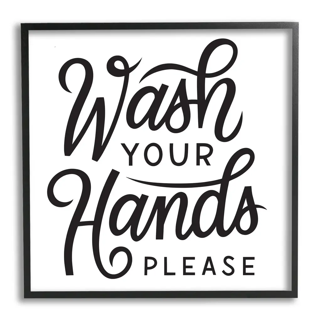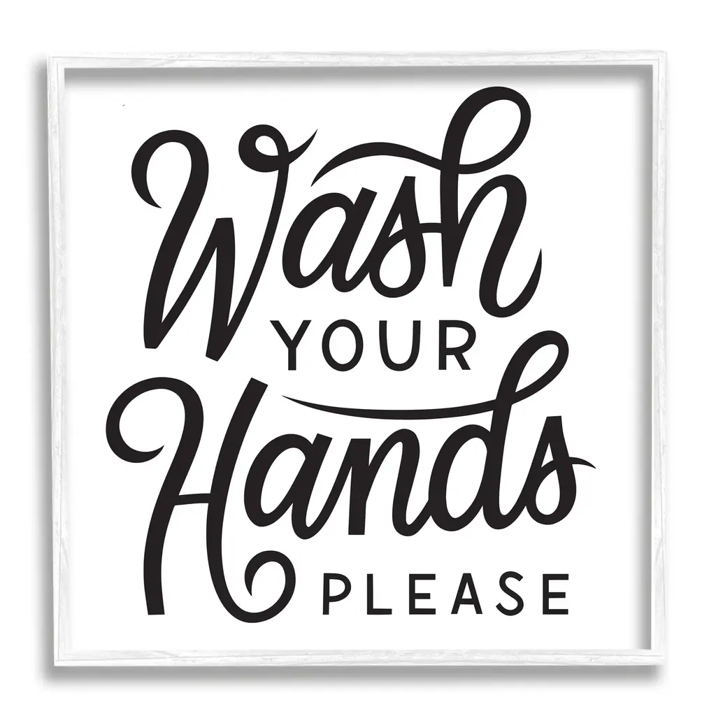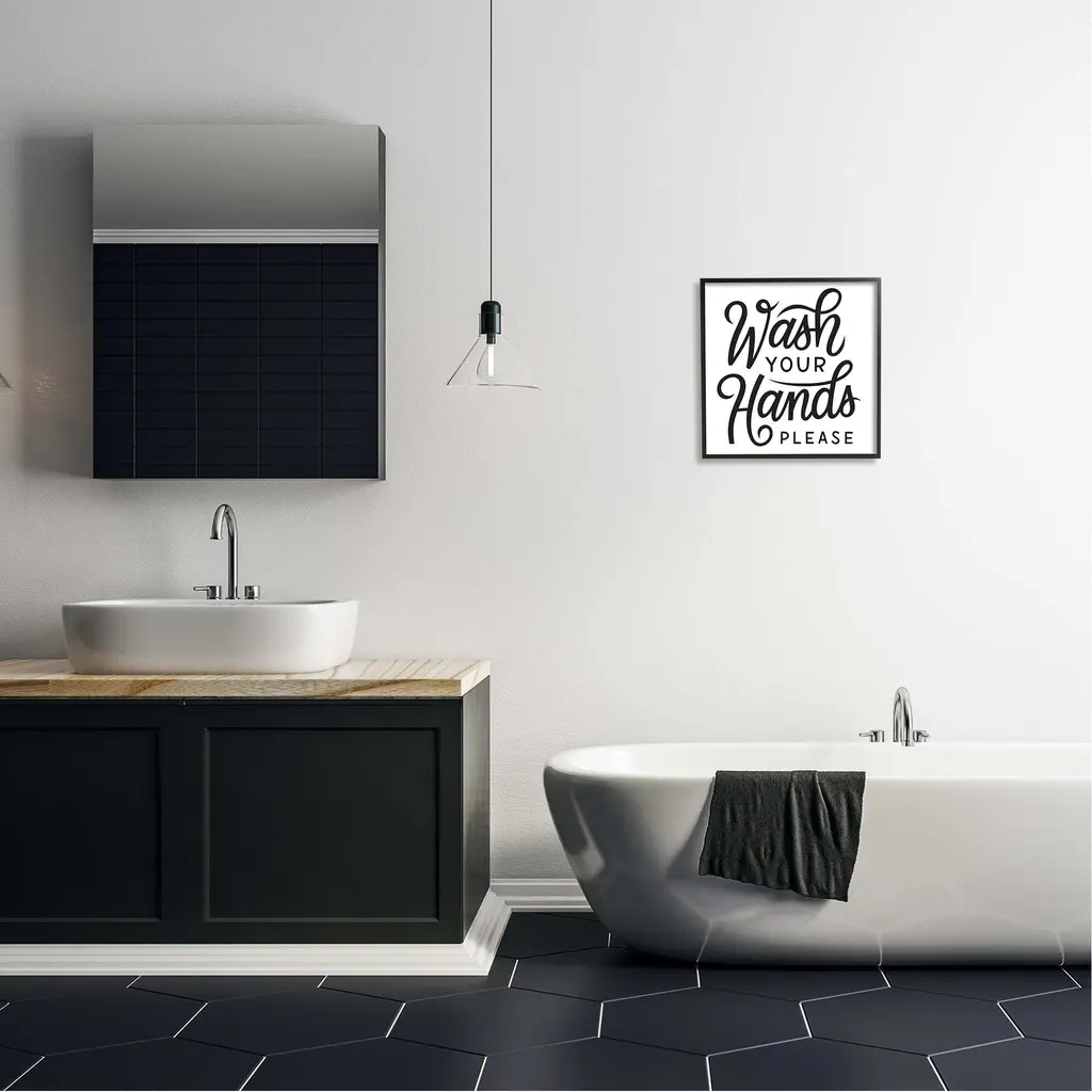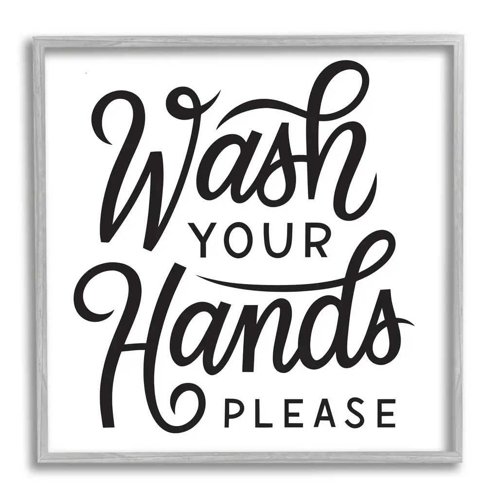 Stupell Wash Hands Please Bathroom Typography Text Sign Framed Wall Art - Black - 24 X 24 - Grey