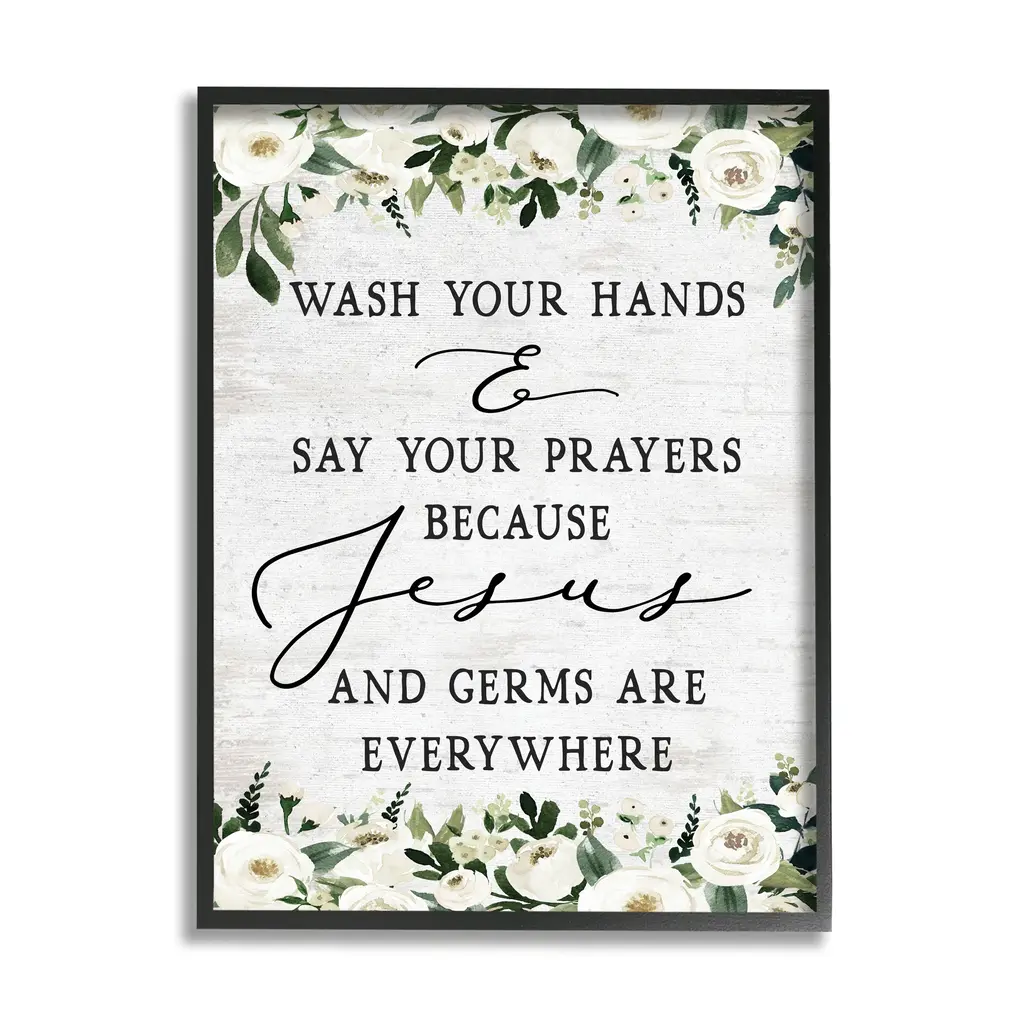 Stupell Wash Hands Say Prayers Jesus Germs Everywhere Phrase Framed Wall Art - Green - 11 X 14 - Black