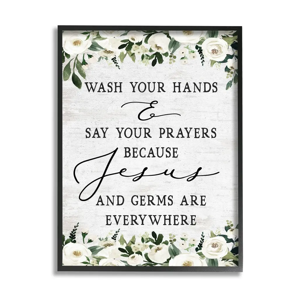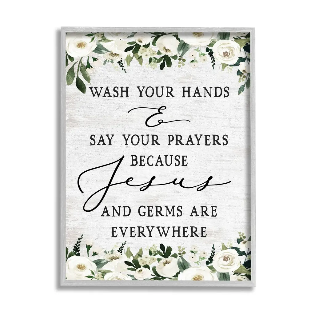 Stupell Wash Hands Say Prayers Jesus Germs Everywhere Phrase Framed Wall Art - Green - 11 X 14 - Grey