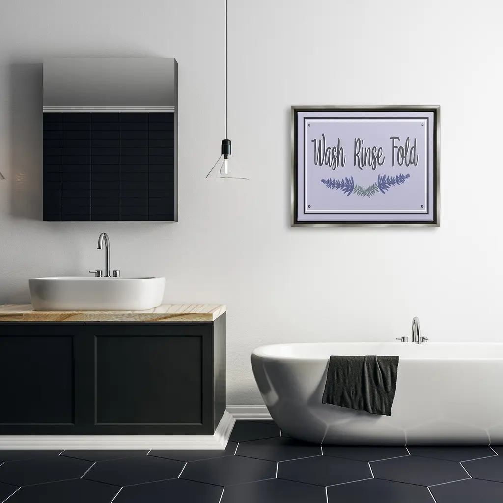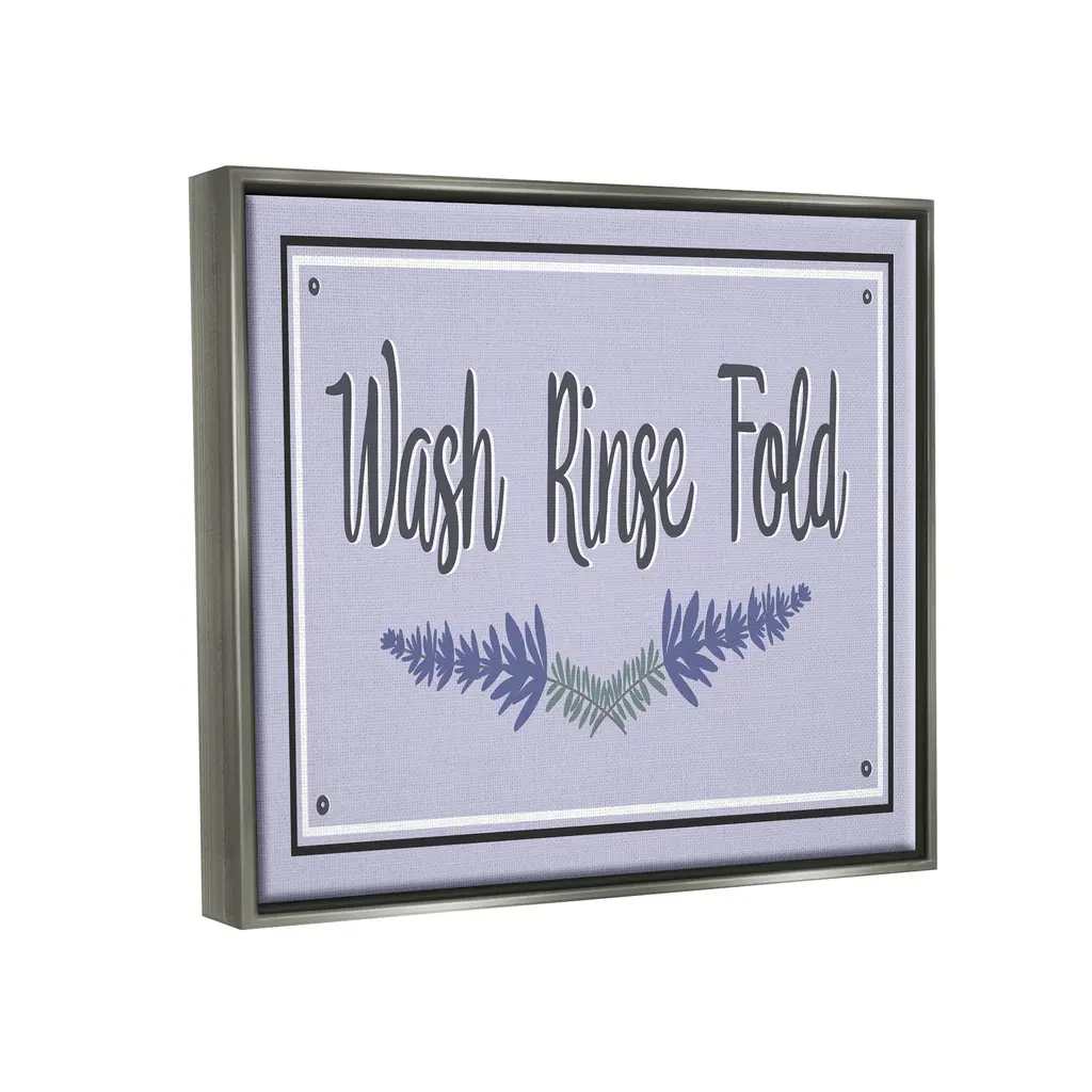 Elevate your home or office to the next level with Stupell Framed Floating Canvas Wall Art. Our premium hand-stretched canvas is mounted securely into a sturdy lightweight frame. The museum-style gap between the wrapped canvas and the box frame gives the illusion of floating artwork. Stupell Wall Art is made in the USA.Features: Dimensions: 21 x 1.7 x 17 Frame, 20 x 1.5 x 16 Canvas ArtFloating Frame Sizes Include Standard: 21 x 1.7 x 17 Oversized: 31 x 1.7 x 25Wall Art is Ready to Hang - No Installation or Hardware Needed. For Easy Set Up Lean or Layer Artwork on Shelf or Against Wall.Our elevated 1.7" Thick Floating Frame is the perfect complement to our canvas style Wall Art. We use only the highest quality inks in house with industry leading printing solutions. Canvas is hand stretched over a durable wood foundation and then mounted securly into a Modern Box Frame. Made in the USA.Artwork Relates To: Lavender, Purple, Bathroom, Laundry, Wash Rinse FoldDesign by Darlene Seale