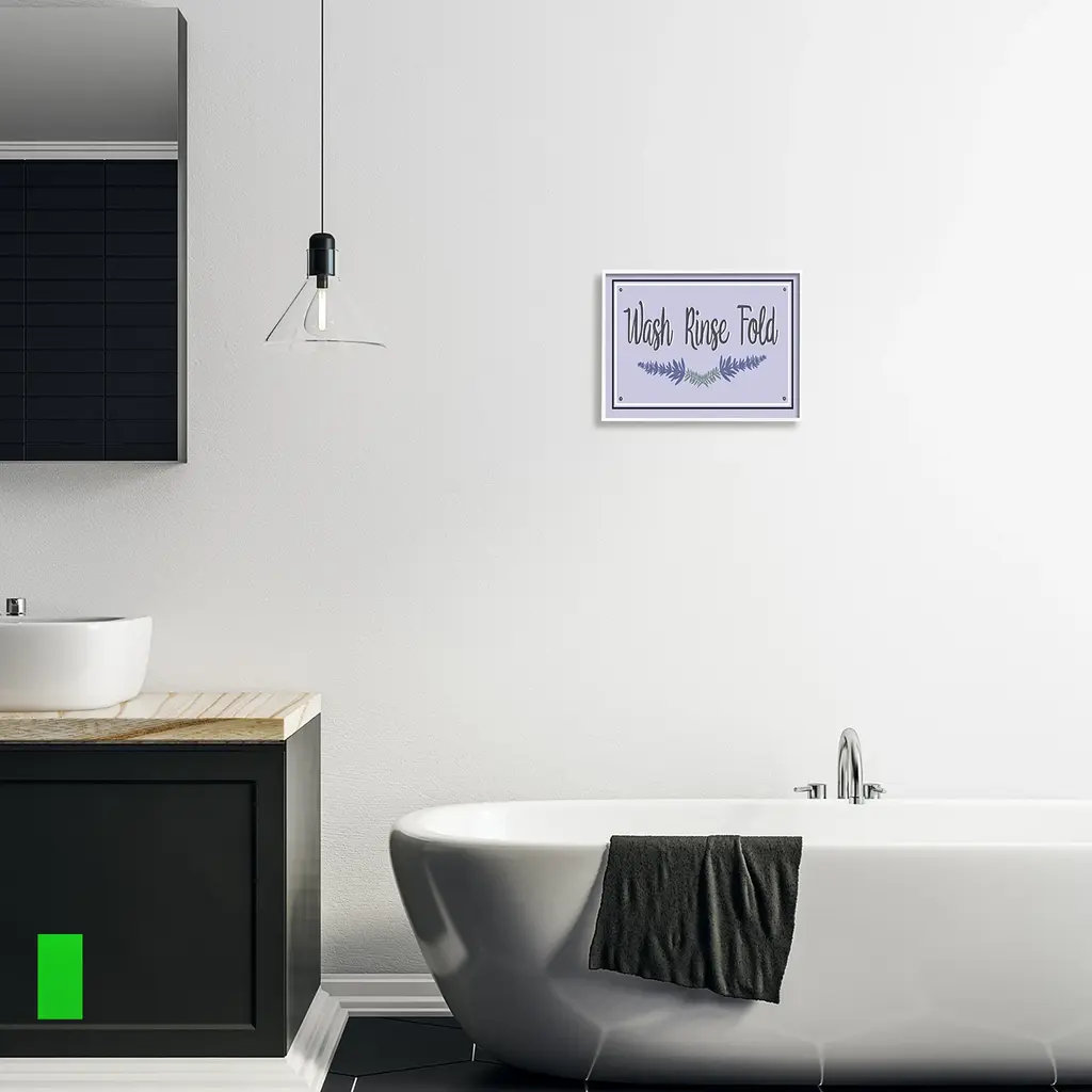 Add dimension to any room with our textured Framed Giclee Artwork. Our framed artwork is securely mounted into a 1.5-inch thick wood grain frame and ready to hang. Frames are available in three alluring styles: black, gray farmhouse and white. In addition, you should check out our oversized options if you want a statement piece. Stupell Wall Art is made in the USA.Features: Dimensions: 14 x 1.5 x 11 FramedFramed Giclee Sizes Include Standard: 14 x 1.5 x 11 Large: 20 x 1.5 x 16 Oversized: 30 x 1.5 x 24Wall Art is Ready to Hang - No Installation or Hardware Needed. For Easy Set Up Lean or Layer Artwork on Shelf or Against Wall.Our giclée prints are carefully mounted on a durable MDF backing, and then perfectly finished in a 1.5 inch thick woodgrain frame. Mounted frame colors include black, gray farmhouse and white. Made In USA.Artwork Relates To: Lavender, Purple, Bathroom, Laundry, Wash Rinse FoldDesign by Darlene Seale
