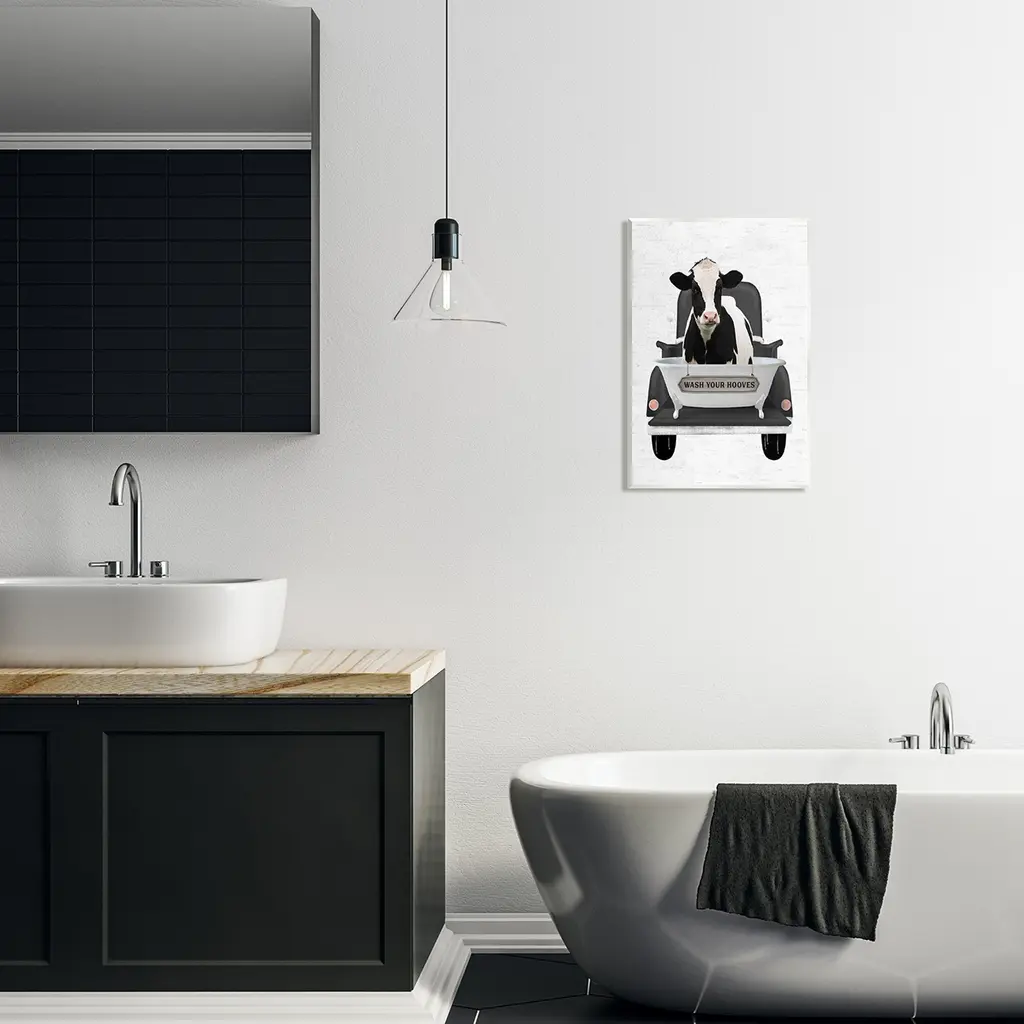 Our wall plaques start as high-quality lithograph prints mounted on durable 0.5-inch thick MDF wood. Each piece is hand finished and comes with a fresh layer of white foil on the sides to give it a crisp, clean look. Plaques arrive ready to hang without installation and come with removable plastic corners to keep them from damage in transit. Stupell Wall Art is made in the USA.Features: Dimensions: 10 x 0.5 x 15 InchesWall Plaque Sizes Include Standard: 10 x 0.5 x 15 Oversized: 13 x 0.5 x 19Wall Art is Ready to Hang with Hardware Free Hanging. No installation required. For Easy Set Up Lean or Layer Artwork on Shelf or Against Wall.All of our wall plaques start off as high quality lithograph prints that are then mounted on durable 0.5 inch thick MDF wood. Each piece is hand finished and comes with a fresh layer of foil on the sides to give it a crisp clean look. Made In USA.Artwork Relates To: Animal, Mammal, Wildlife, Pickup Truck, Bathroom, Rustic, Cow, Wash Your HoovesDesign by Lettered and Lined