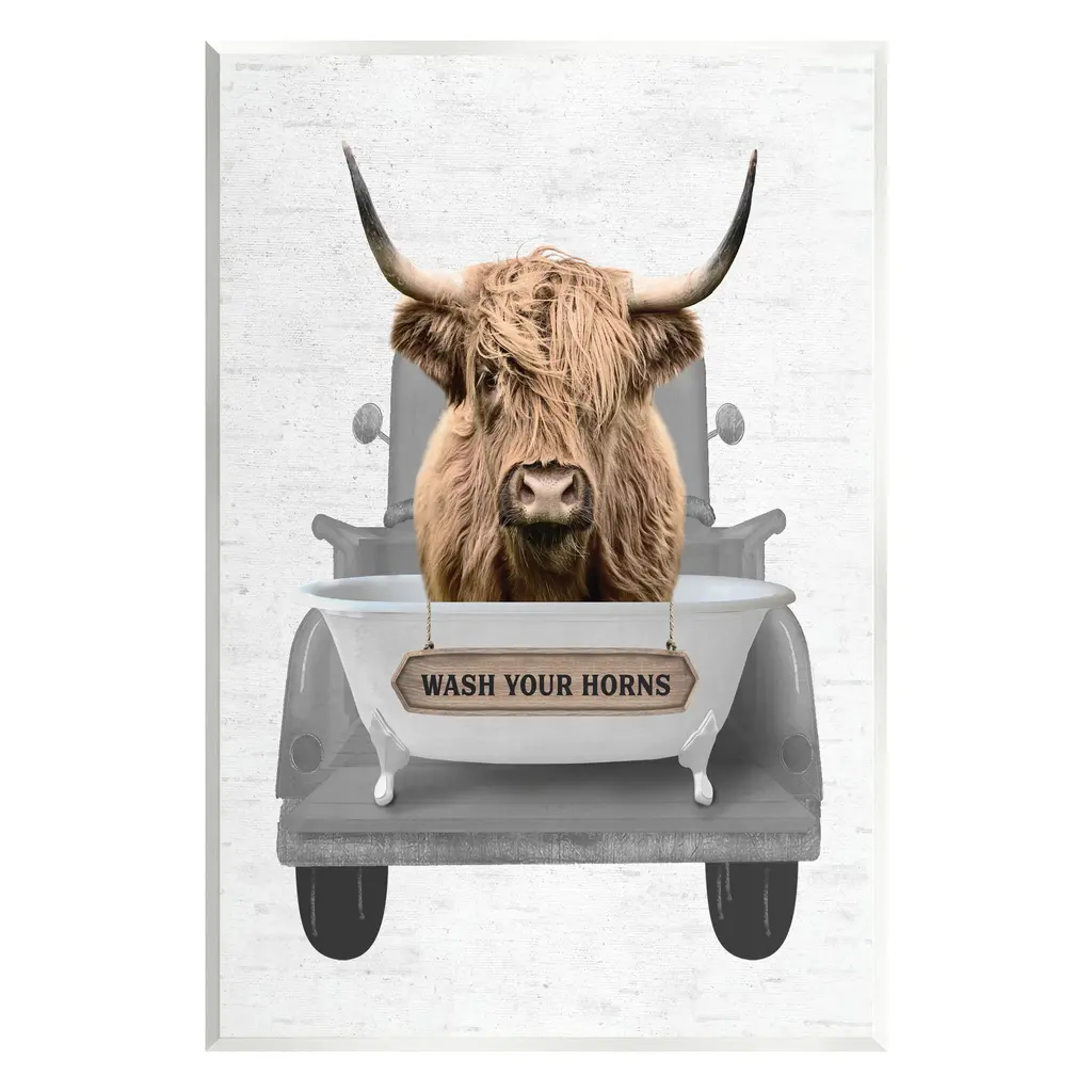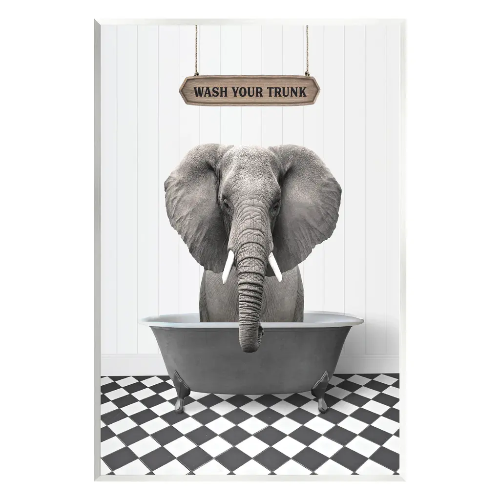 Our wall plaques start as high-quality lithograph prints mounted on durable 0.5-inch thick MDF wood. Each piece is hand finished and comes with a fresh layer of white foil on the sides to give it a crisp, clean look. Plaques arrive ready to hang without installation and come with removable plastic corners to keep them from damage in transit. Stupell Wall Art is made in the USA.Features: Dimensions: 10 x 0.5 x 15 InchesWall Plaque Sizes Include Standard: 10 x 0.5 x 15 Oversized: 13 x 0.5 x 19Wall Art is Ready to Hang with Hardware Free Hanging. No installation required. For Easy Set Up Lean or Layer Artwork on Shelf or Against Wall.All of our wall plaques start off as high quality lithograph prints that are then mounted on durable 0.5 inch thick MDF wood. Each piece is hand finished and comes with a fresh layer of foil on the sides to give it a crisp clean look. Made In USA.Artwork Relates To: Animal, Mammal, Wildlife, Pickup Truck, Bathroom, Rustic, Elephant, Wash your TrunkDesign by Lettered and Lined