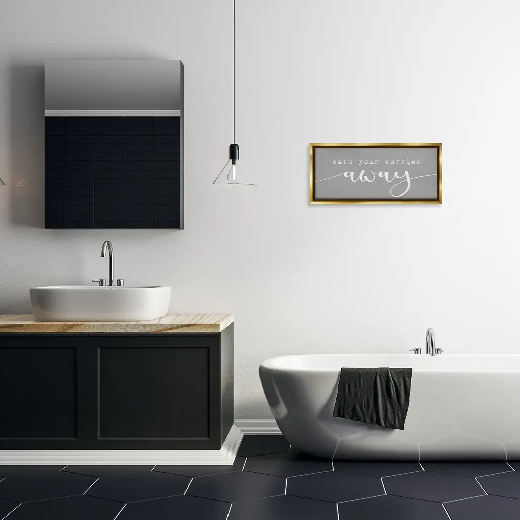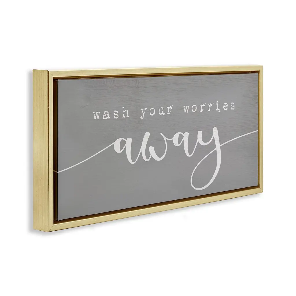 Stupell Wash Your Worries Away Phrase Framed Floater Canvas Wall Art Design By Daphne Polselli - 25 X 11 - Gold
