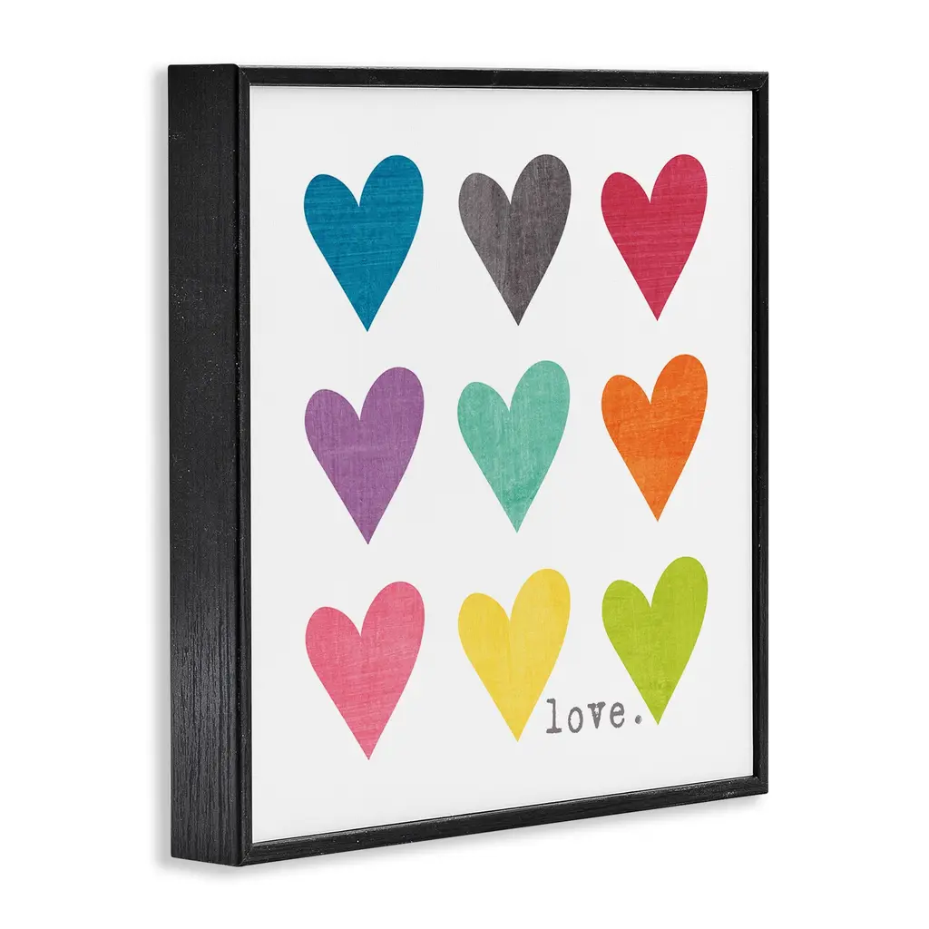 Stupell Watercolor Cute Hearts Love Framed Giclee Texturized Art, 12 X 1.5 X 12, Made In Usa - Multi-Color - 12 X 12 - Black