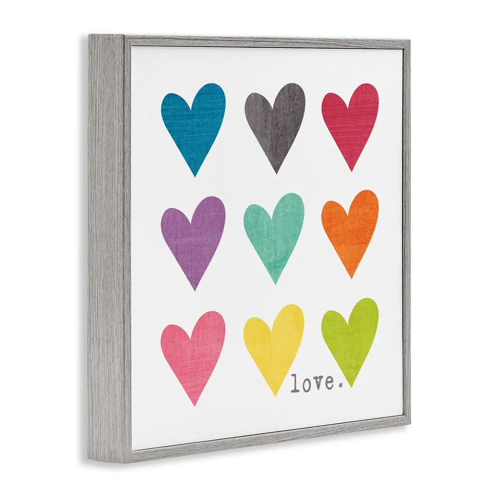 Stupell Watercolor Cute Hearts Love Framed Giclee Texturized Art, 12 X 1.5 X 12, Made In Usa - Multi-Color - 24 X 24 - Grey