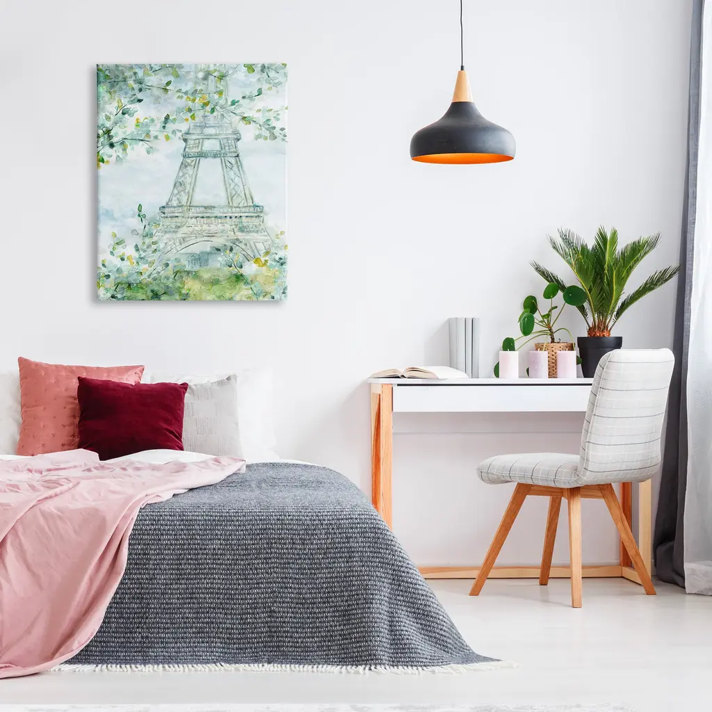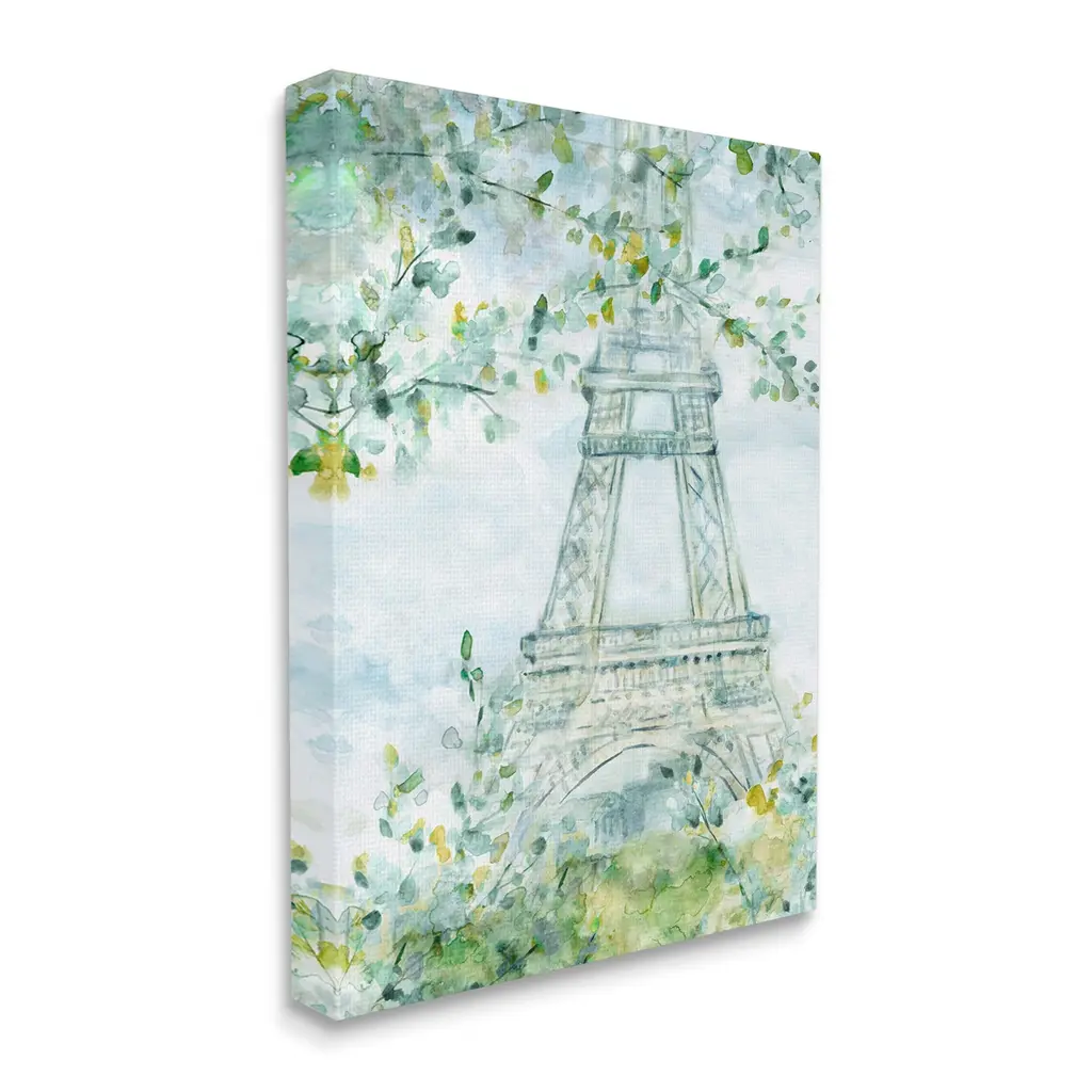 Stupell Watercolor Eiffel Tower Painting Soft Green Leaf Trees Canvas Wall Art - 30 X 40