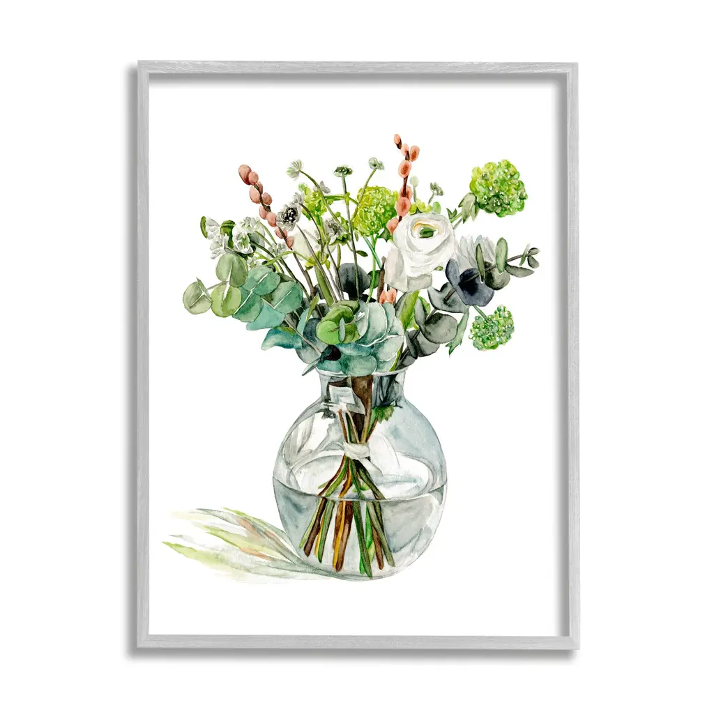 Stupell Watercolor Foliage Bouquet Soft White Floral Glass Jar Framed Wall Art - 16 X 20 - Black