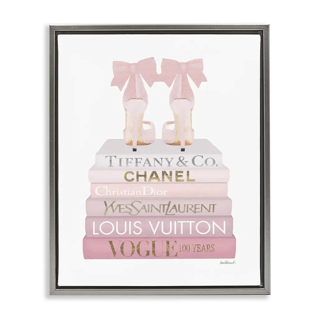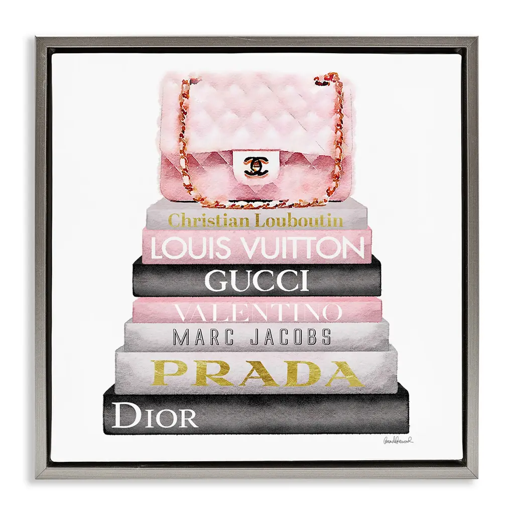 Elevate your home or office to the next level with Stupell Framed Floating Canvas Wall Art. Our premium hand-stretched canvas is mounted securely into a sturdy lightweight frame. The museum-style gap between the wrapped canvas and the box frame gives the illusion of floating artwork. Stupell Wall Art is made in the USA.Features: Dimensions: 18 x 1.7 x 18 Frame, 17 x 1.5 x 17 Canvas ArtFloating Frame Canvas Products are available in sizes 18"x18" and 25"x25". All Floating Frame Canvas Products have a 1.7" Depth.Wall Art is Ready to Hang with Hardware Free Hanging. No Installation required. For Easy Set Up Lean or Layer Artwork on Shelf or Against Wall. Artwork is Permently Fixed into the Frame.Our elevated 1.7" Thick Floating Frame is the perfect complement to our canvas style Wall Art. We use only the highest quality inks in house with industry leading printing solutions. Canvas is hand stretched over a durable wood foundation and then mounted securly into a Modern Box Frame. Made in the USA.Artwork Relates To: Glam, Fashion, Bookstack, Purse, Pastel, Trendy, ModernDesign by Amanda Greenwood