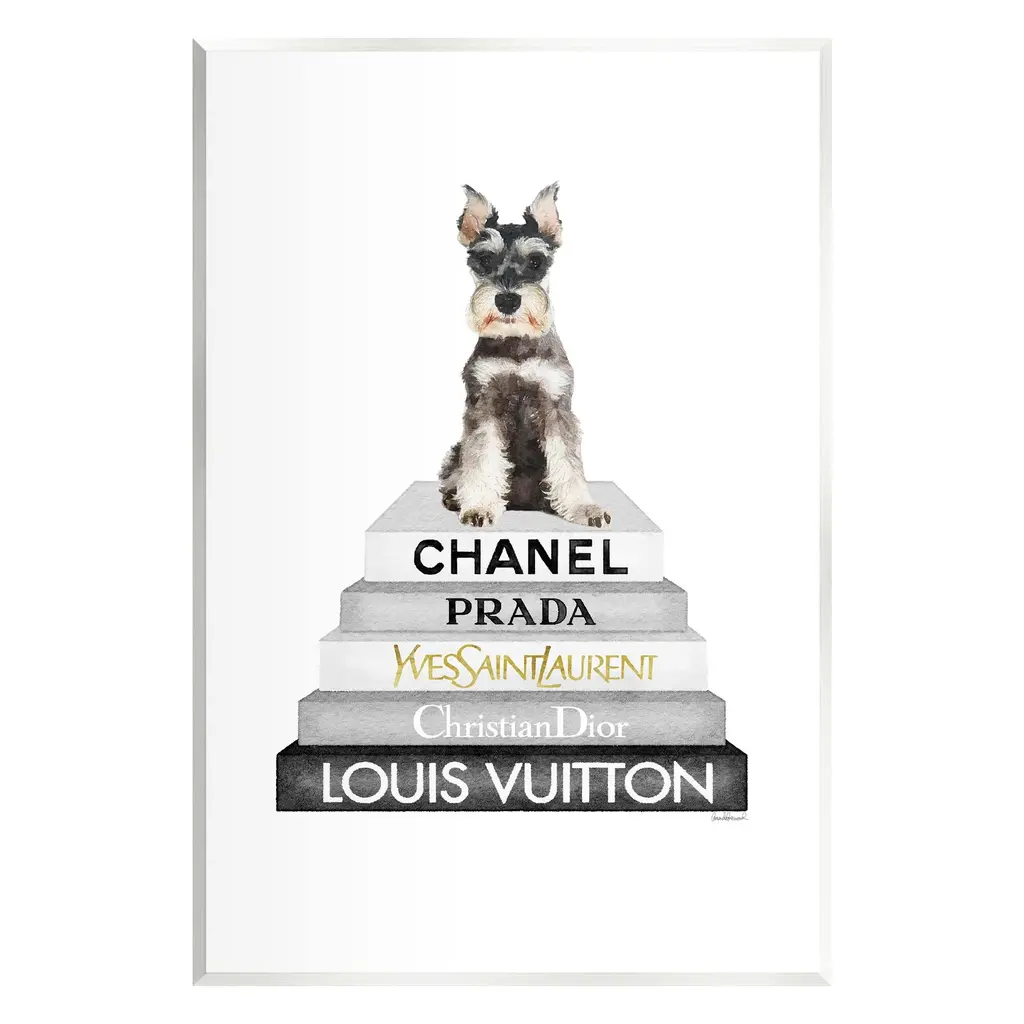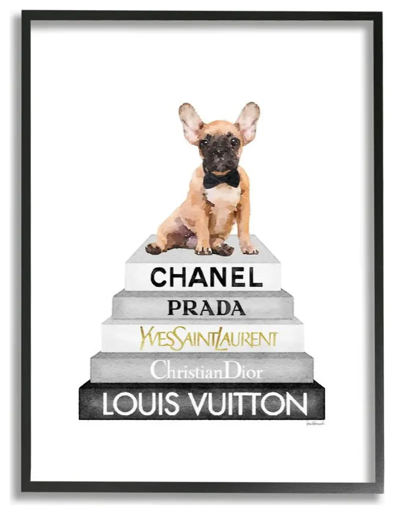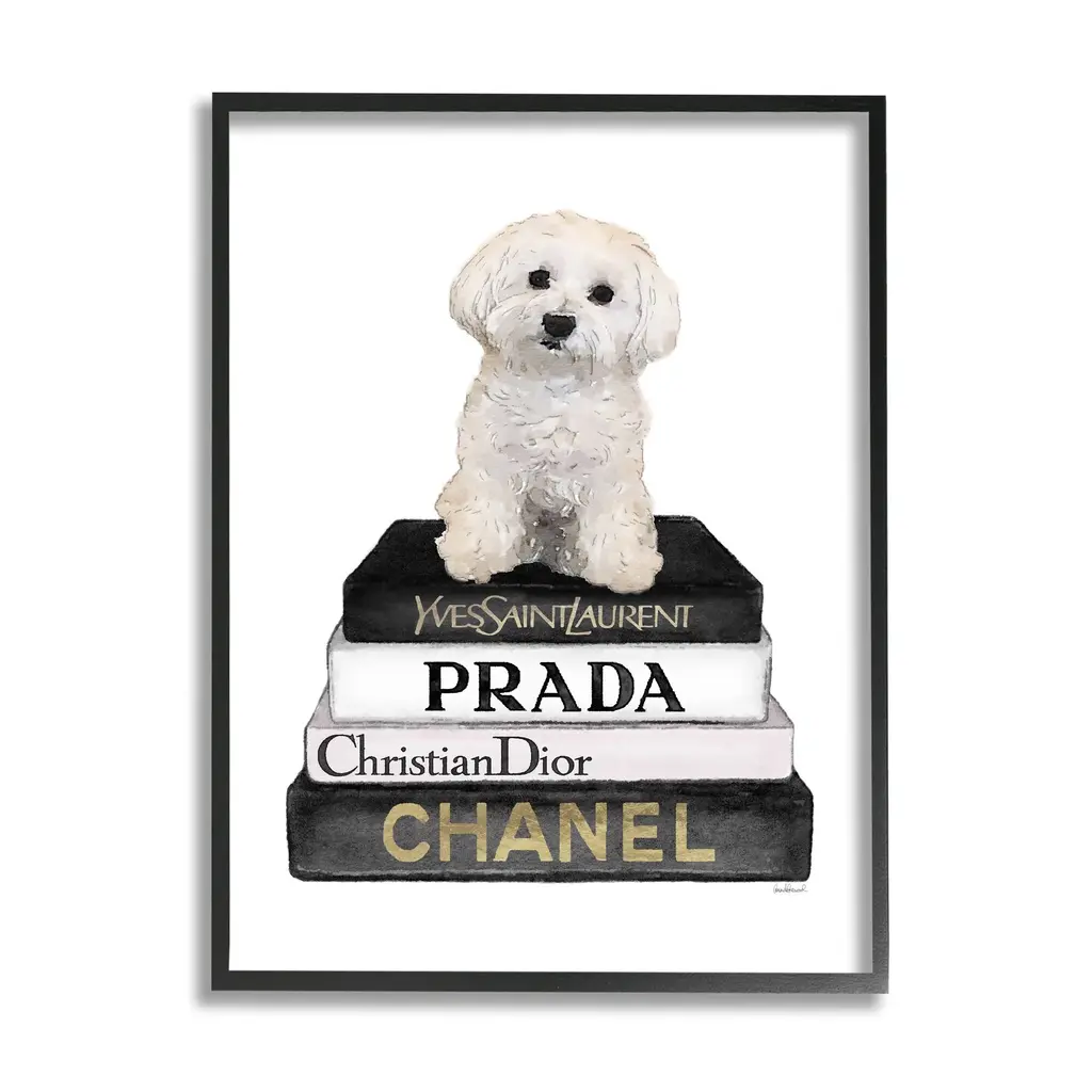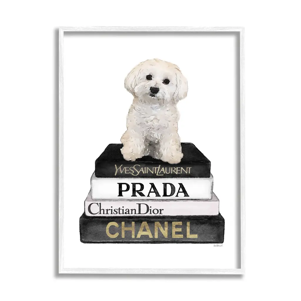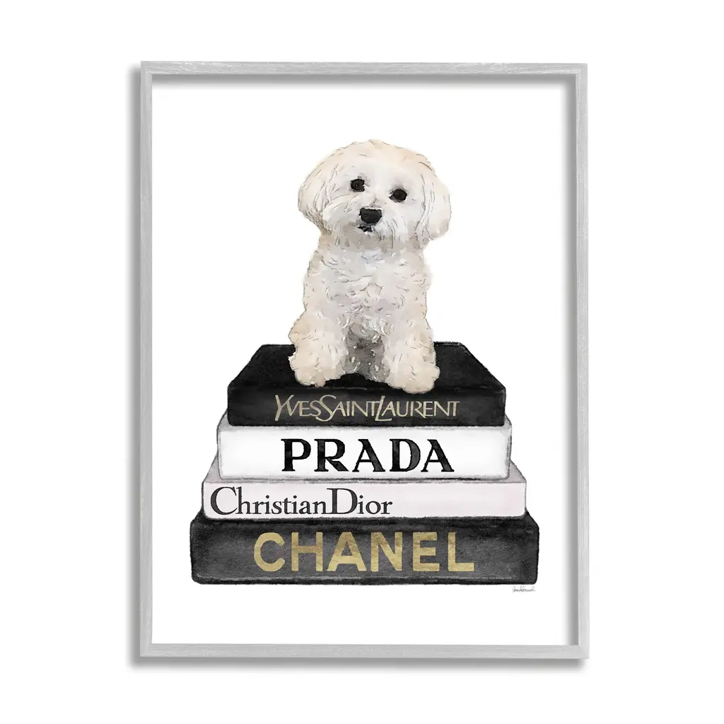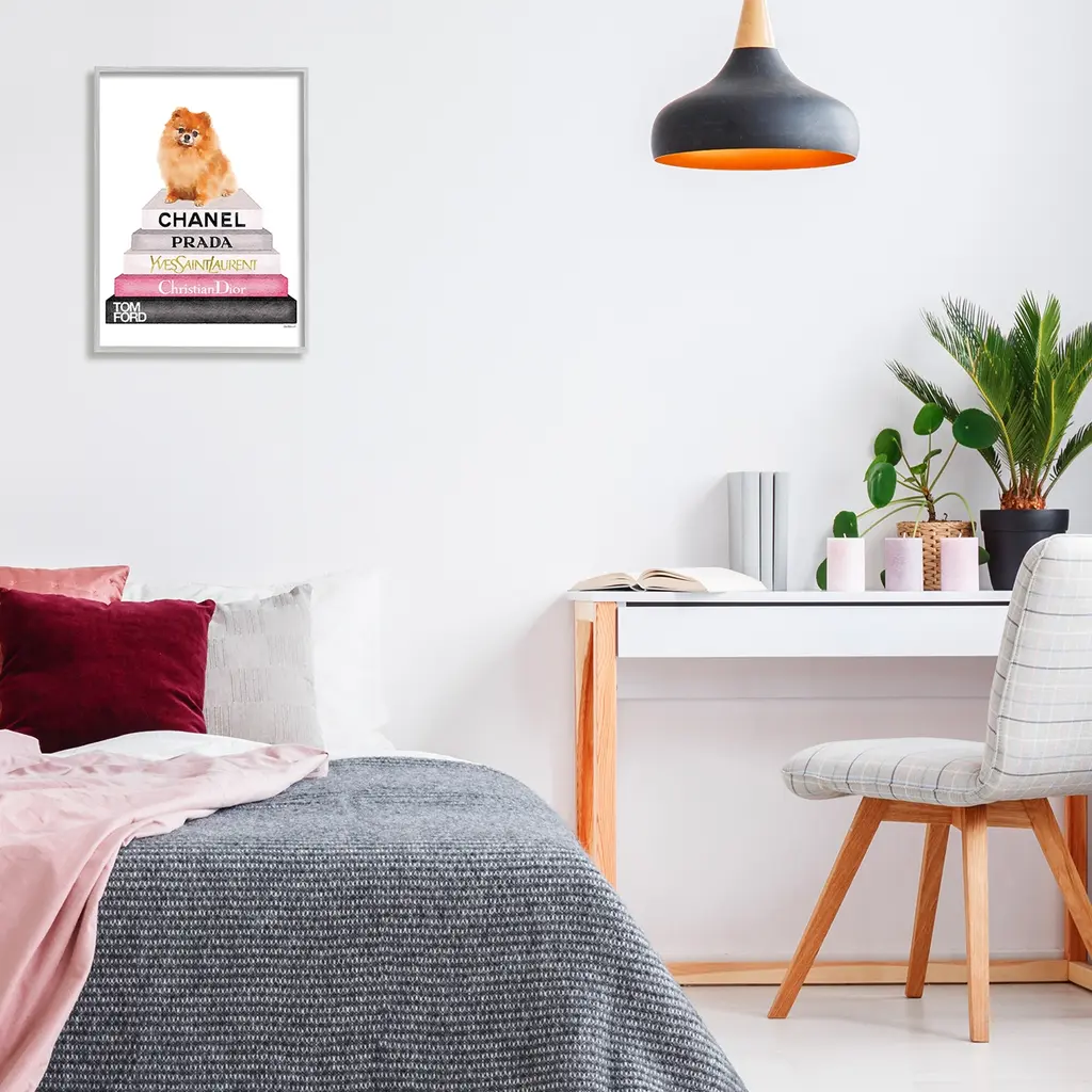 Stupell Watercolor High Fashion Bookstack Pomeranian Dog Grey Framed, 16 X 20, Proudly Made In Usa - 16 X 20 - 16 X 20 - Wood - Grey