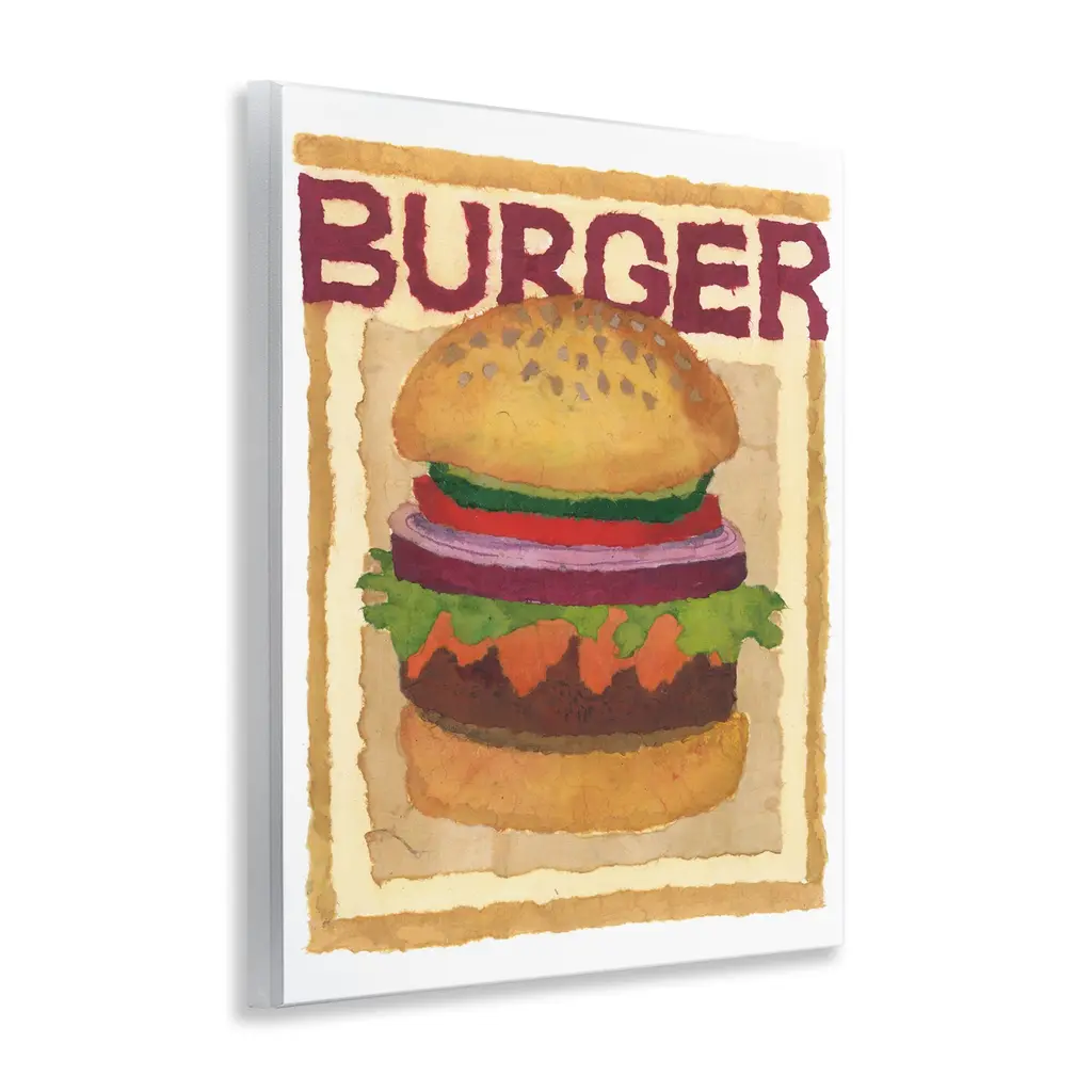 Our wall plaques start as high-quality lithograph prints mounted on durable 0.5-inch thick MDF wood. Each piece is hand finished and comes with a fresh layer of white foil on the sides to give it a crisp, clean look. Plaques arrive ready to hang without installation and come with removable plastic corners to keep them from damage in transit. Stupell Wall Art is made in the USA.Features: Dimensions: 11 x 0.5 x 14 InchesWall Art is Ready to Hang with Hardware Free Hanging. No installation required. For Easy Set Up Lean or Layer Artwork on Shelf or Against Wall.All of our wall plaques start off as high quality lithograph prints that are then mounted on durable 0.5 inch thick MDF wood. Each piece is hand finished and comes with a fresh layer of foil on the sides to give it a crisp clean look. Made In USA.Artwork Relates To: Burger, Food, BURGERDesign by Nancy Overton