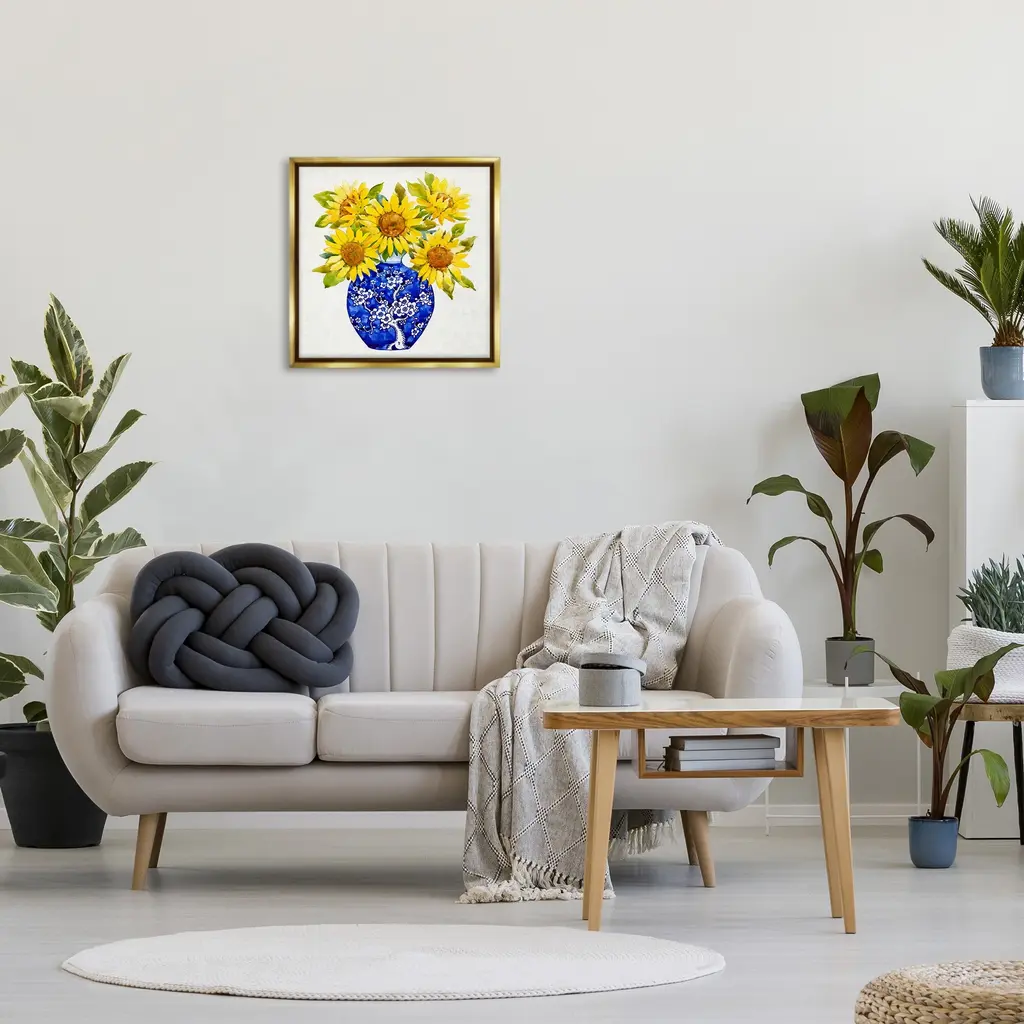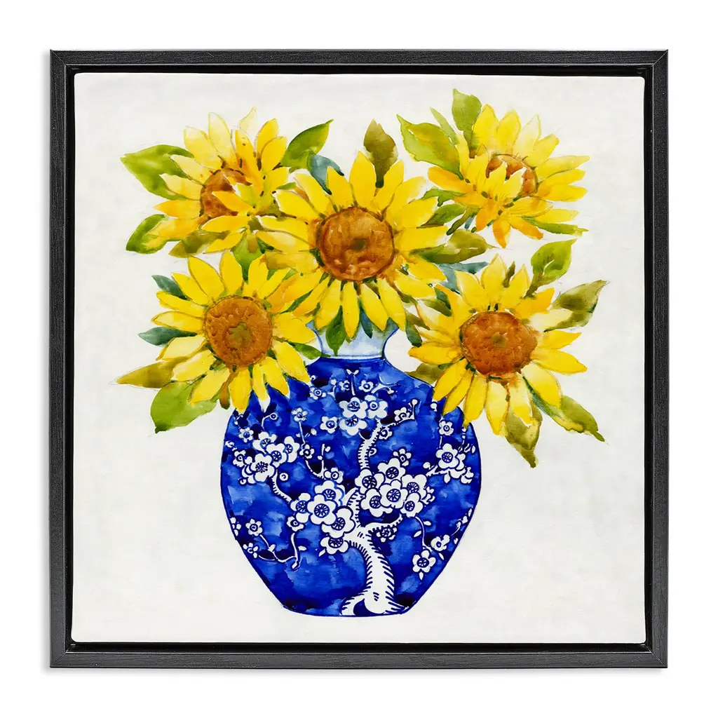 Elevate your home or office to the next level with Stupell Framed Floating Canvas Wall Art. Our premium hand-stretched canvas is mounted securely into a sturdy lightweight frame. The museum-style gap between the wrapped canvas and the box frame gives the illusion of floating artwork. Stupell Wall Art is made in the USA.Features: Dimensions: 18 x 1.7 x 18 Frame, 17 x 1.5 x 17 Canvas ArtFloating Frame Canvas Products are available in sizes 18"x18" and 25"x25". All Floating Frame Canvas Products have a 1.7" Depth.Wall Art is Ready to Hang with Hardware Free Hanging. No Installation required. For Easy Set Up Lean or Layer Artwork on Shelf or Against Wall. Artwork is Permently Fixed into the Frame.Our elevated 1.7" Thick Floating Frame is the perfect complement to our canvas style Wall Art. We use only the highest quality inks in house with industry leading printing solutions. Canvas is hand stretched over a durable wood foundation and then mounted securly into a Modern Box Frame. Made in the USA.Artwork Relates To: Flower, Blossom, Sunflower, Vase, Pattern, Country, BlossomDesign by Tim OToole