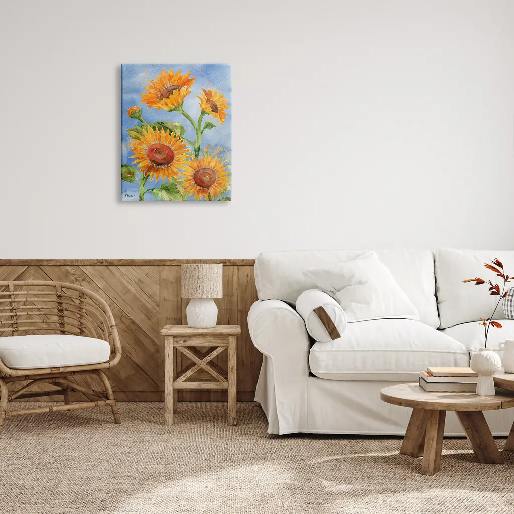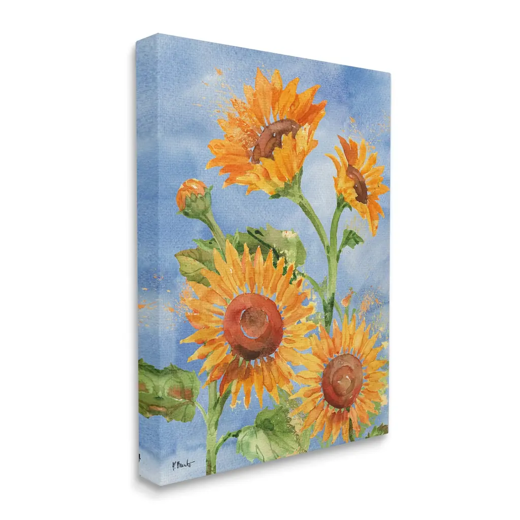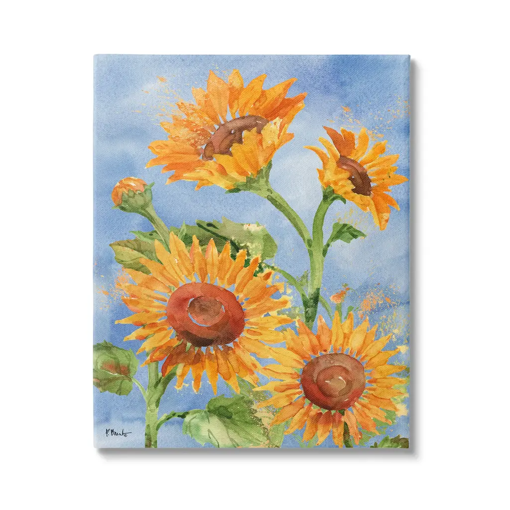 Stupell Watercolor Sunflowers On Blue Canvas Wall Art Design By Paul Brent - 24 X 30