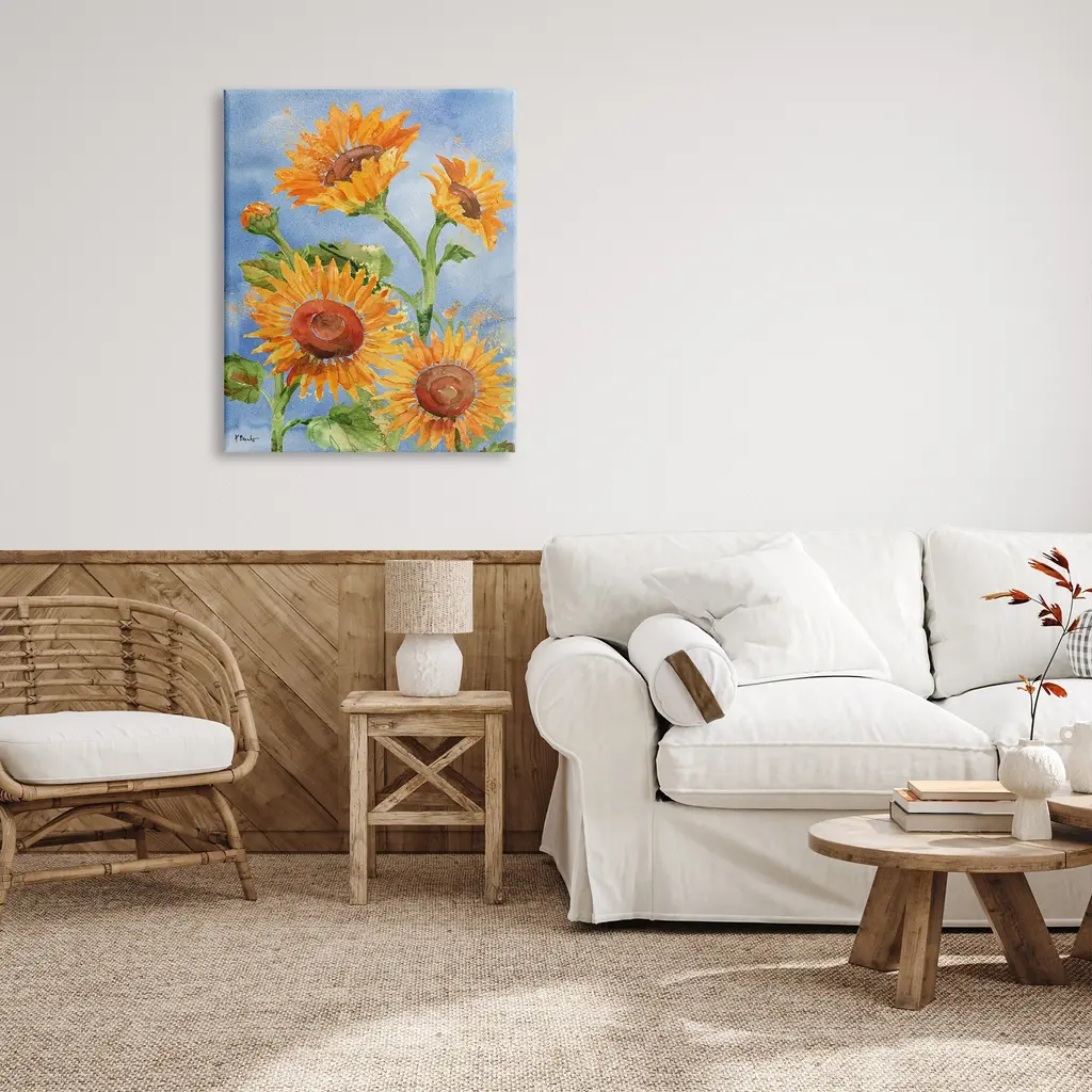 Stupell Watercolor Sunflowers On Blue Canvas Wall Art Design By Paul Brent - 30 X 40