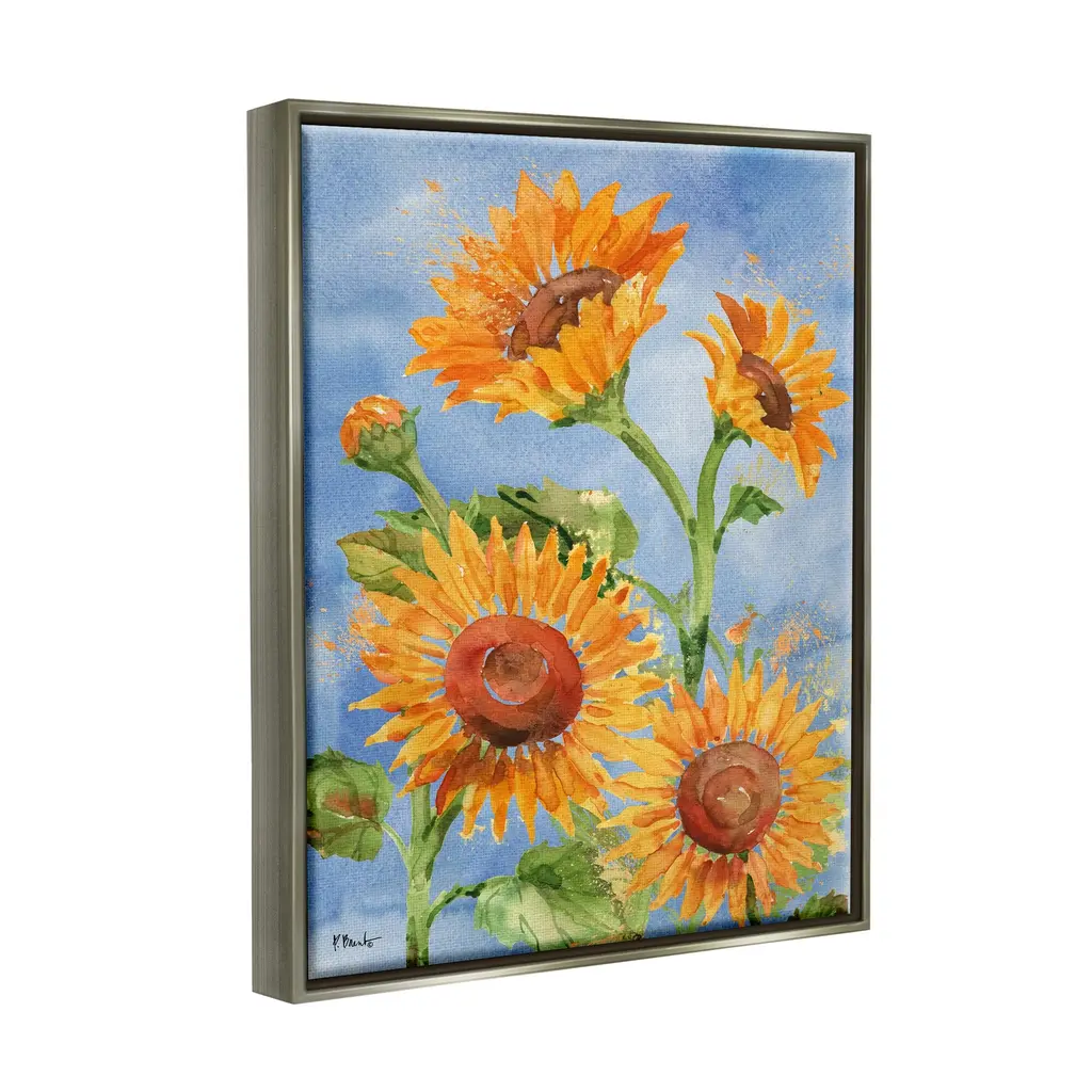 Stupell Watercolor Sunflowers On Blue Framed Floater Canvas Wall Art Design By Paul Brent - 17 X 21 - Grey