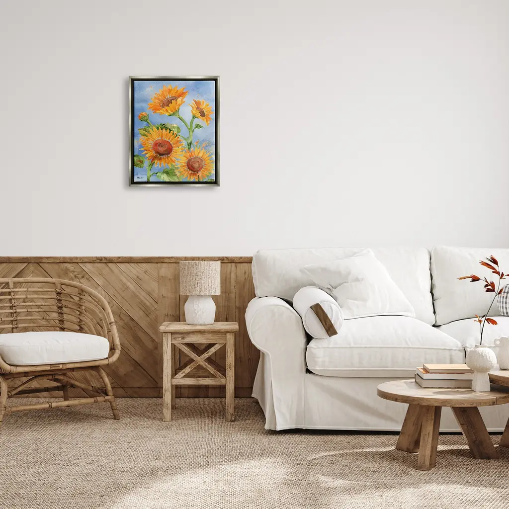 Elevate your home or office to the next level with Stupell Framed Floating Canvas Wall Art. Our premium hand-stretched canvas is mounted securely into a sturdy lightweight frame. The museum-style gap between the wrapped canvas and the box frame gives the illusion of floating artwork. Stupell Wall Art is made in the USA.Features: Dimensions: 17 x 1.7 x 21 Frame, 16 x 1.5 x 20 Canvas ArtFloating Frame Sizes Include Standard: 17 x 1.7 x 21 Oversized: 25 x 1.7 x 31Wall Art is Ready to Hang with Hardware Free Hanging. No installation required. For Easy Set Up Lean or Layer Artwork on Shelf or Against Wall.Our elevated 1.7" Thick Floating Frame is the perfect complement to our canvas style Wall Art. We use only the highest quality inks in house with industry leading printing solutions. Canvas is hand stretched over a durable wood foundation and then mounted securly into a Modern Box Frame. Made in the USA.Artwork Relates To: Plant, Flower, Sunflower, Painting, Petal, FloralDesign by Paul Brent