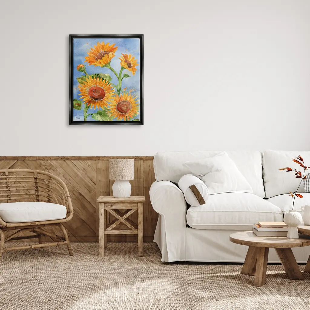 Stupell Watercolor Sunflowers On Blue Framed Floater Canvas Wall Art Design By Paul Brent - 25 X 31 - Black