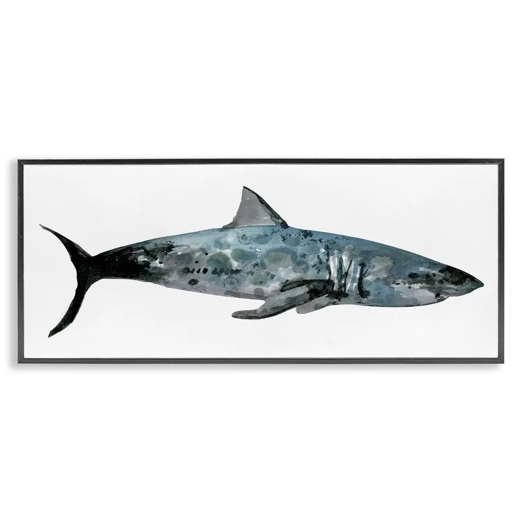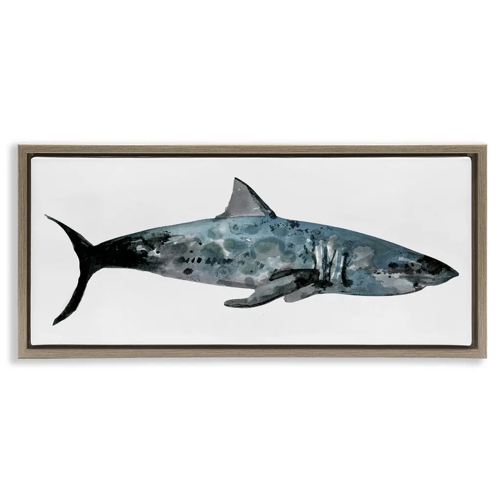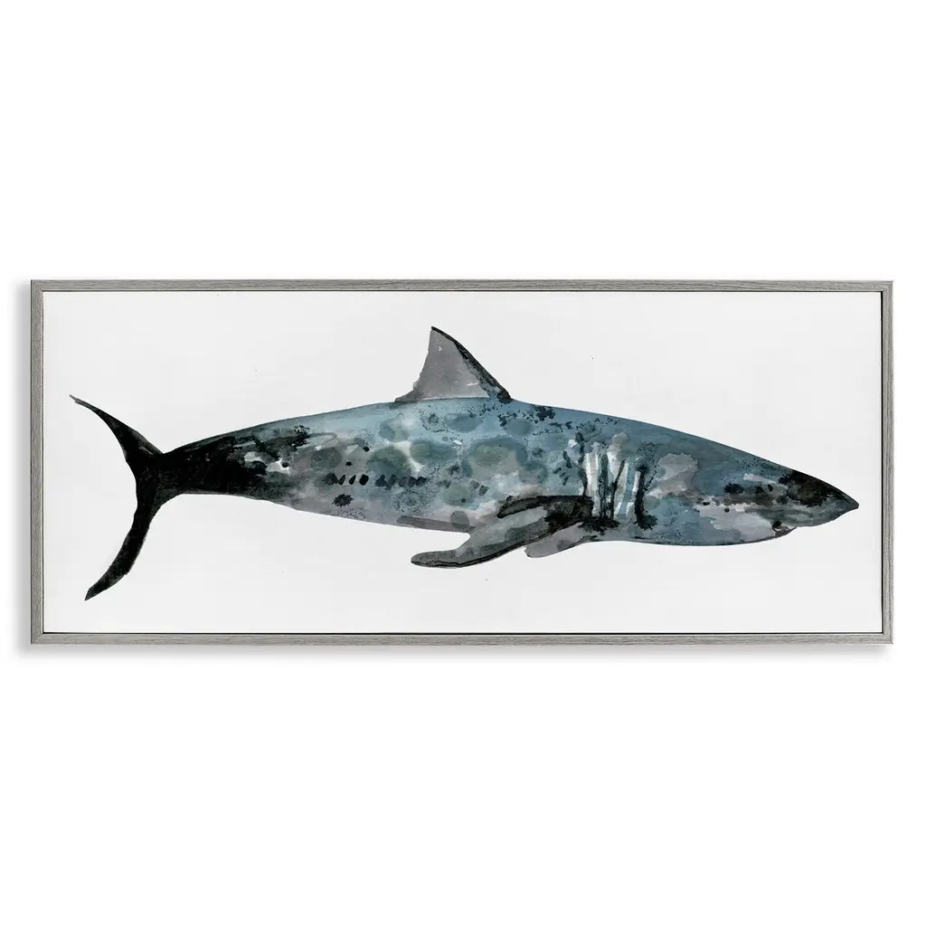 Add dimension to any room with our textured Framed Giclee Artwork. Our framed artwork is securely mounted into a 1.5-inch thick wood grain frame and ready to hang. Frames are available in three alluring styles: black, gray farmhouse and white. In addition, you should check out our oversized options if you want a statement piece. Stupell Wall Art is made in the USA.Features: Dimensions: 24 x 1.5 x 10 FramedFramed Giclee Product Sizes include 24"x10" and 30"x13". All Framed Giclee products have a 1.5" Depth.Wall Art is Ready to Hang with Hardware Free Hanging. No installation required. For Easy Set Up Lean or Layer Artwork on Shelf or Against Wall.Our giclée prints are carefully mounted on a durable MDF backing, and then perfectly finished in a 1.5 inch thick woodgrain frame. Mounted frame colors include black, gray farmhouse and white. Made In USA.Artwork Relates To: Nautical, Marine Life, Sea Life, Shark, AnimalDesign by Stellar Design Studio