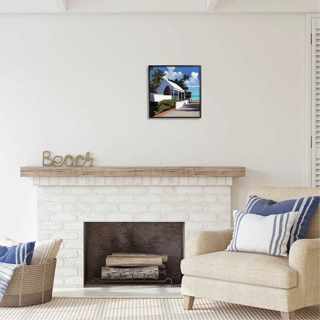 Add dimension to any room with our textured Framed Giclee Artwork. Our framed artwork is securely mounted into a 1.5-inch thick wood grain frame and ready to hang. Frames are available in three alluring styles: black, gray farmhouse and white. In addition, you should check out our oversized options if you want a statement piece. Stupell Wall Art is made in the USA.Features: Dimensions: 12 x 1.5 x 12 FramedFramed Giclee Sizes Include Standard: 12 x 1.5 x 12 Large: 17 x 1.5 x 17 Oversized: 24 x 1.5 x 24Wall Art is Ready to Hang - No Installation or Hardware Needed. For Easy Set Up Lean or Layer Artwork on Shelf or Against Wall.Our giclée prints are carefully mounted on a durable MDF backing, and then perfectly finished in a 1.5 inch thick woodgrain frame. Mounted frame colors include black, gray farmhouse and white. Made In USA.Artwork Relates To: House, Villa, Summer, Sea, Water, Shelter, Beach, Coast, Shoreline, Tropical, Waterfront, Palm TreeDesign by Rick Knovack